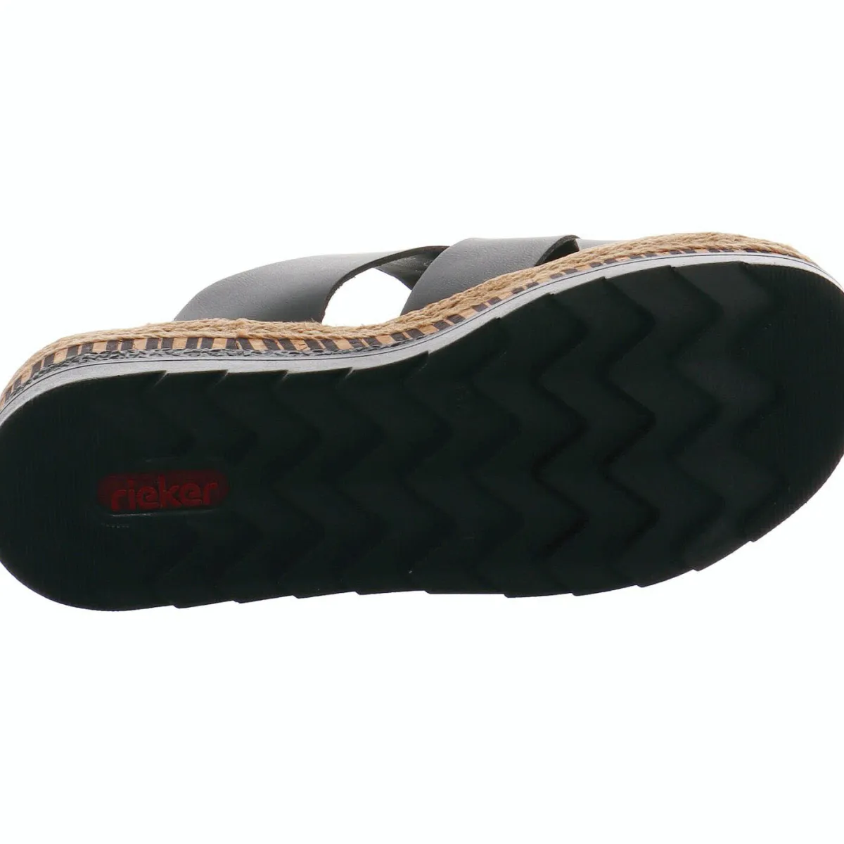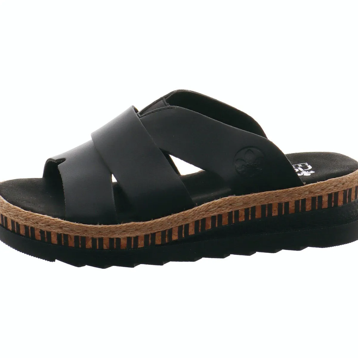 Das Obermaterial aus Kunstleder in Schwarz begeistert durch die schöne Linienführung der Riemen. Die AntiStress Laufsohle ist angenehm weich und bietet einen hervorragenden Tragekomfort. Der Keilabsatz in Schwarz ist mit Kork Optik versehen und unterstreicht das modische Design perfekt.
