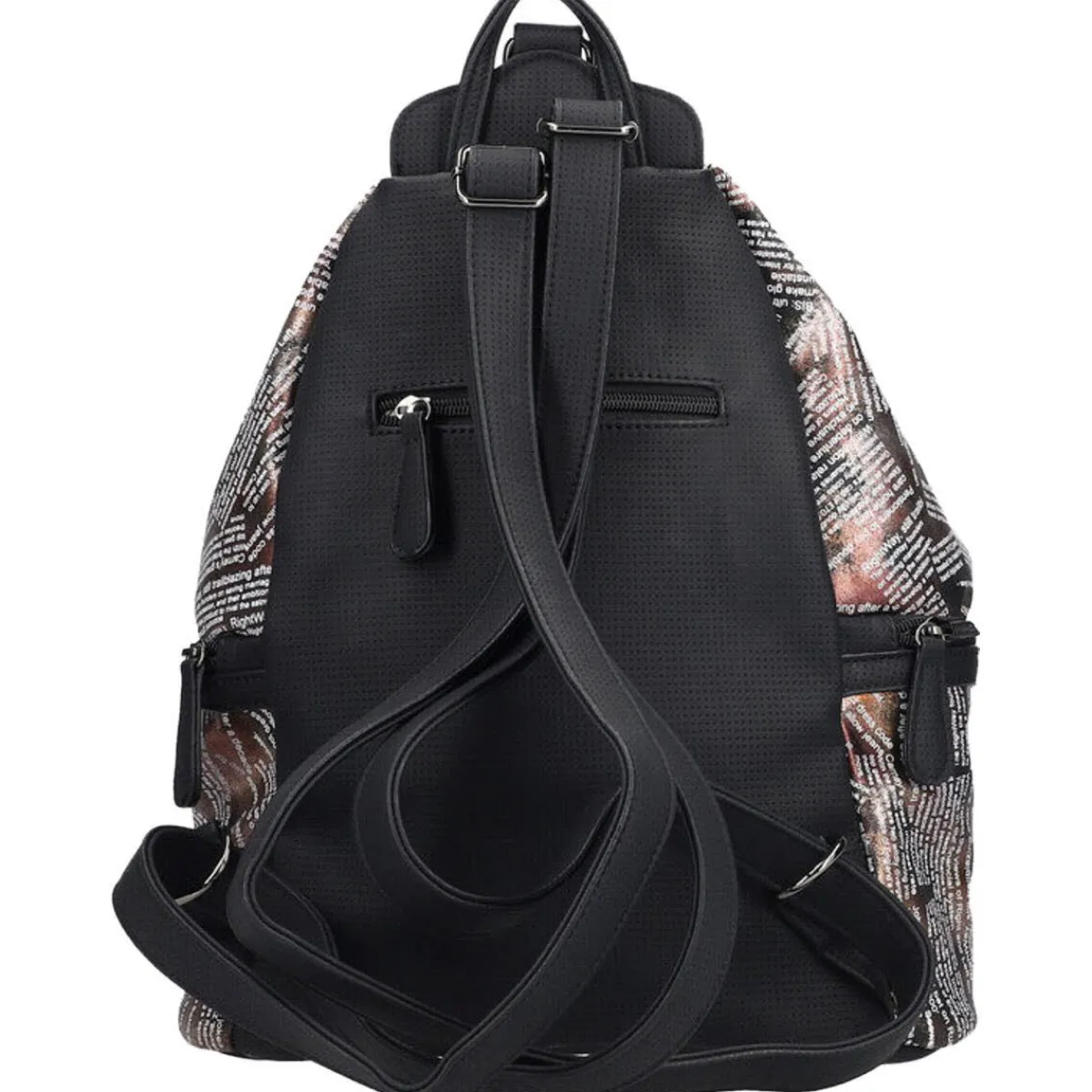Das Obermaterial wurde aus pflegeleichtem Kunstleder in Schwarz gefertigt und ist mit einem auffälligen Allover Muster in Bronze und Gold Metallic versehen.