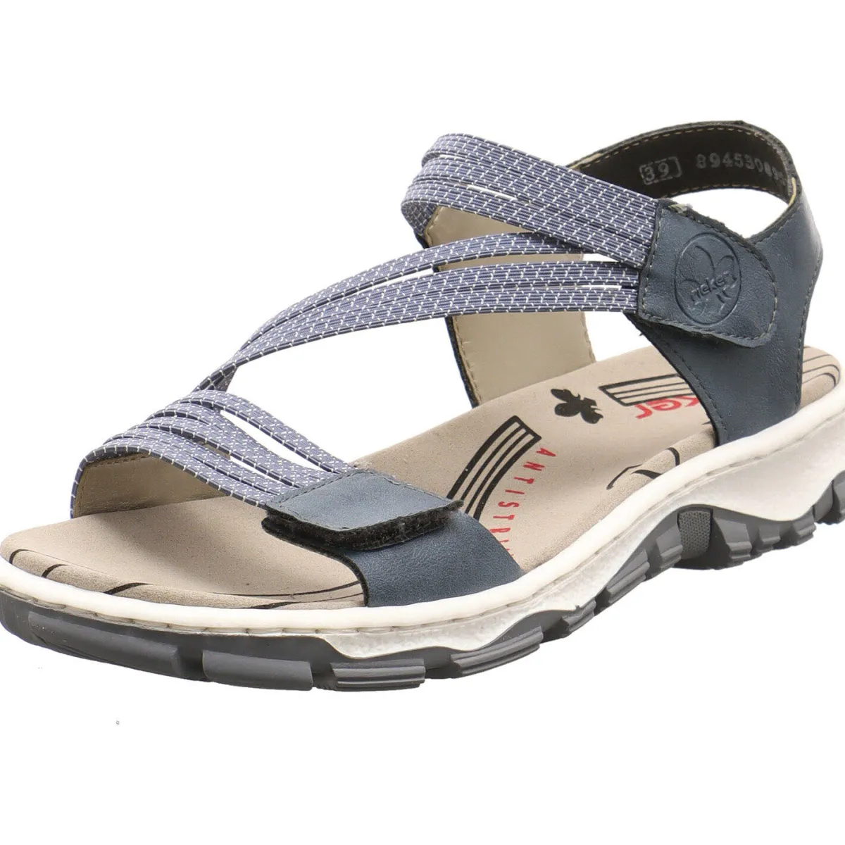 Die AntiStress Innensohle ist angenehm weich gepolstert und bietet einen optimalen Tragekomfort. Die markante Laufsohle ist Weiß abgesetzt und verleiht der Sandale ihren sportlichen Look, gleichzeitig bietet sie guten Halt auch auf steinigem Untergrund.