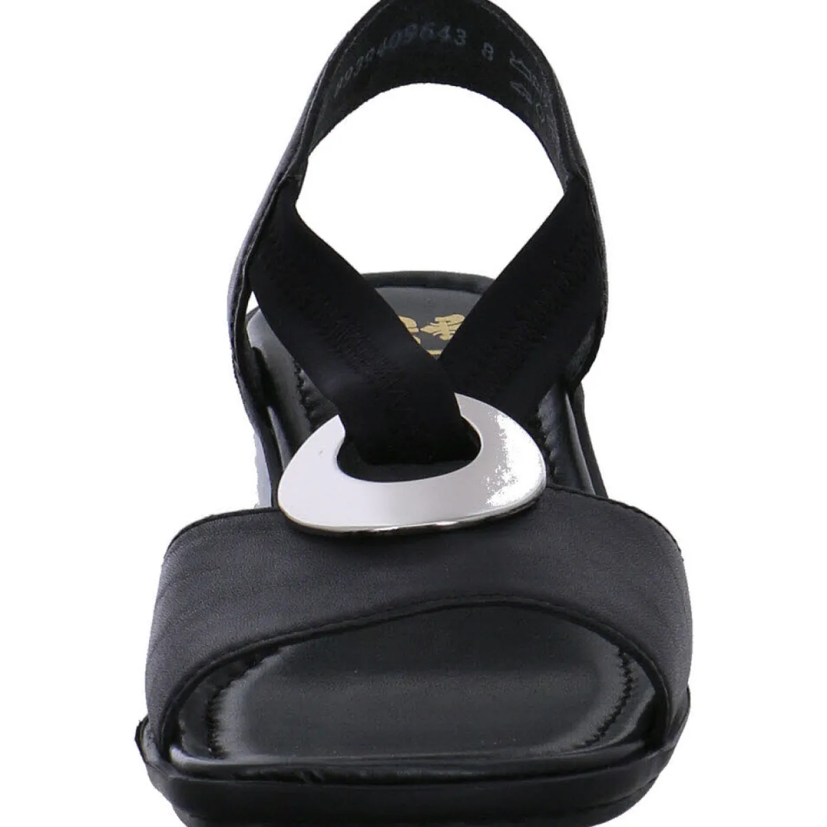 Der überkreuz gehende Riemen ist elastisch und hilft bei einem leichten Einstieg. Der Blockabsatz in Schichtoptik bietet einen sicheren Stand und die Antistress Innensohle sorgt für einen optimalen Tragekomfort.
