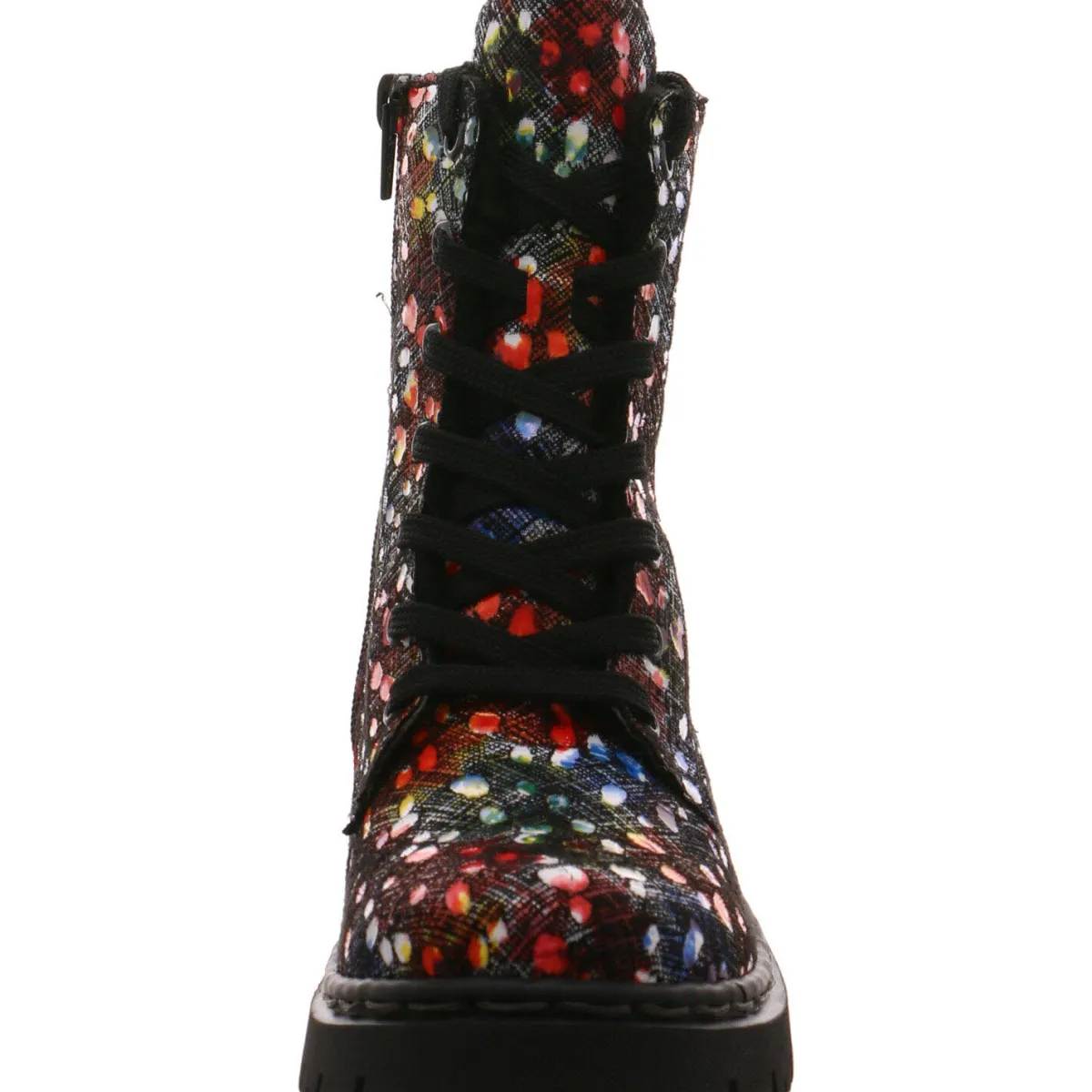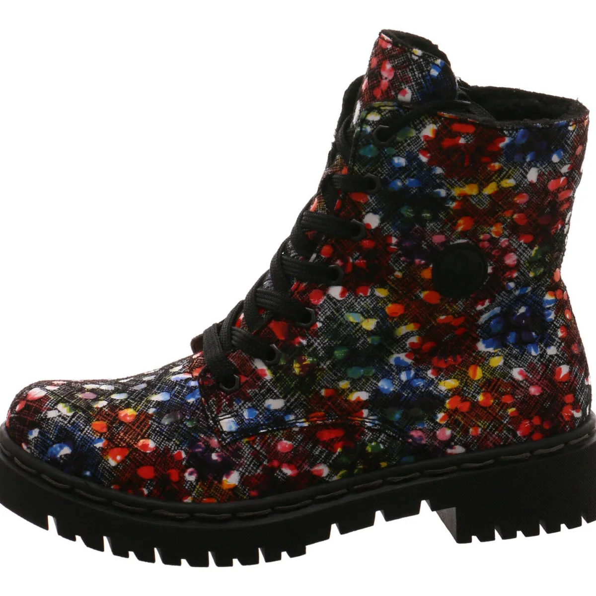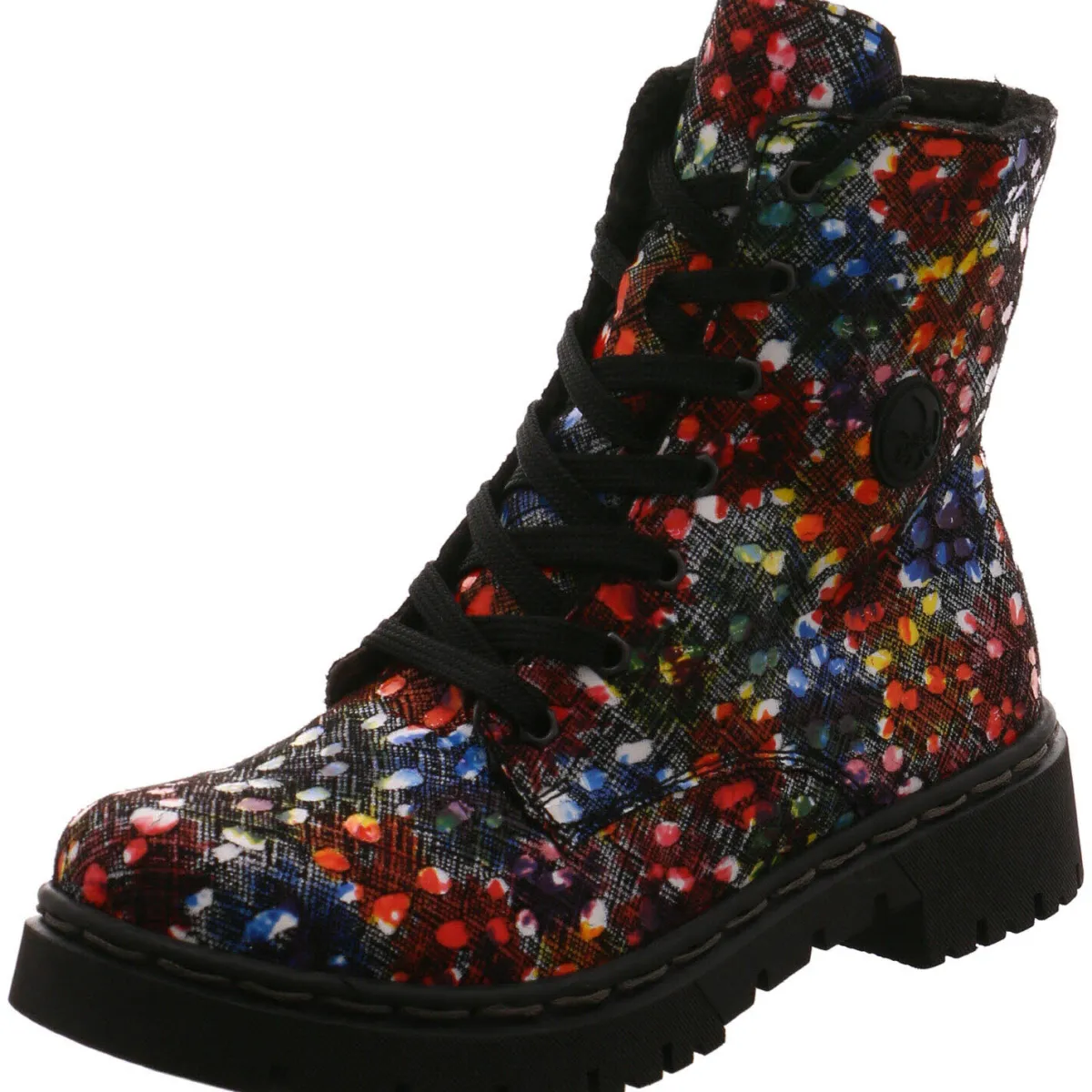Gefertigt aus Kunstleder fällt er durch seinen äuffälligen Print in Bunt sofort ins Auge. Durch die Schnürung und den funktionalen Reißverschluss ist der Einstieg besonders einfach und er kann optimal an den Fuß angepasst werden.