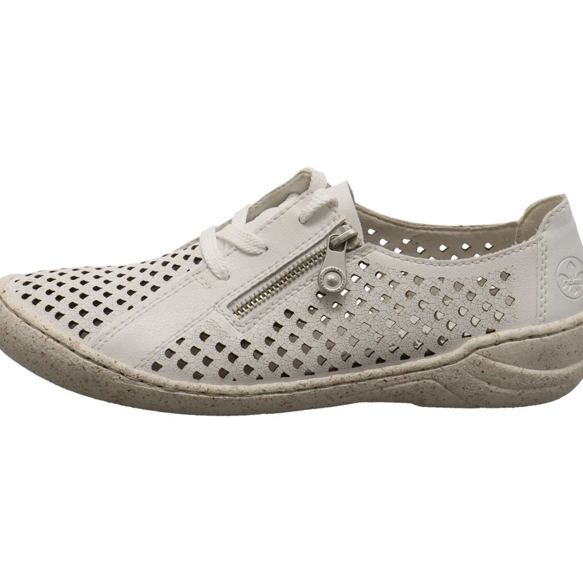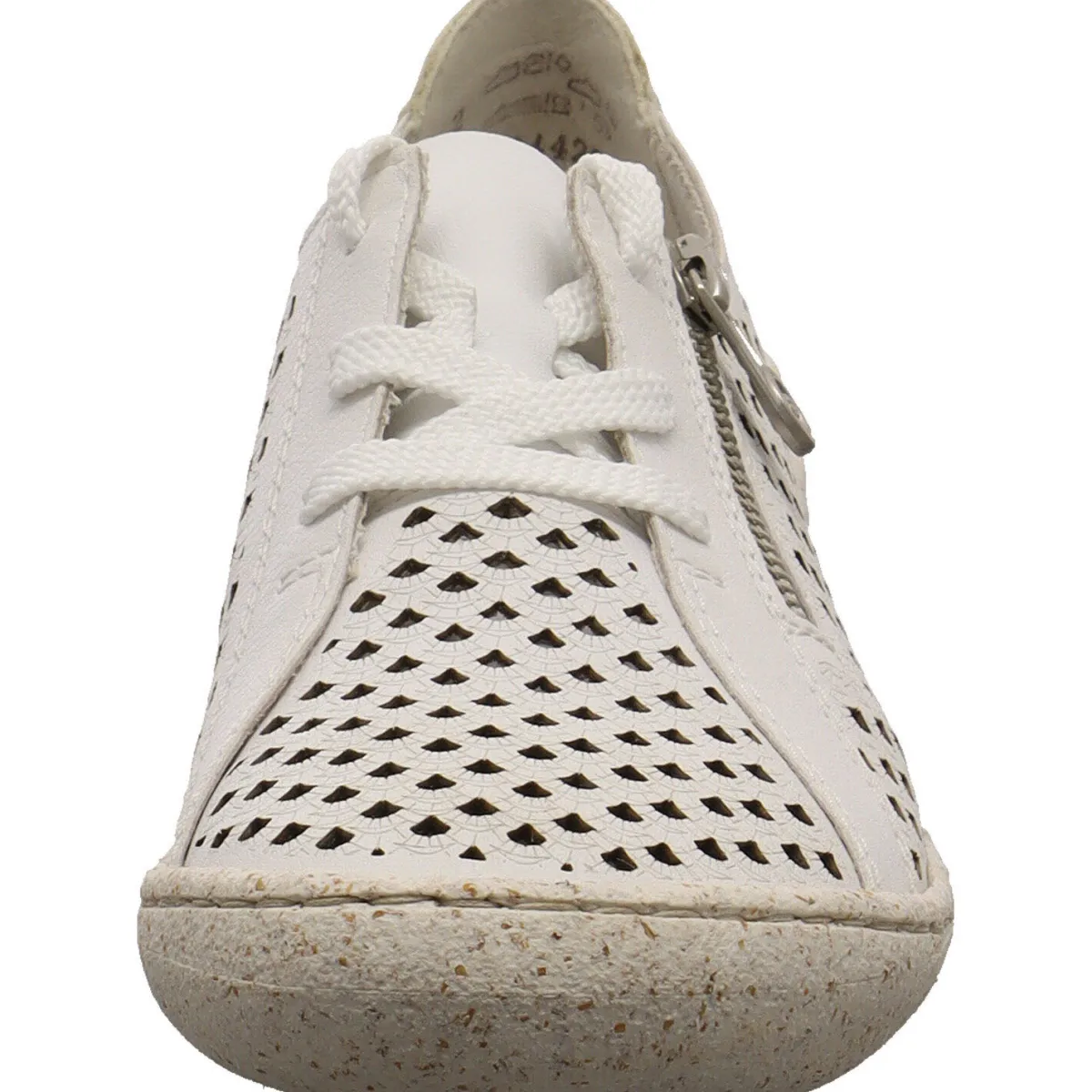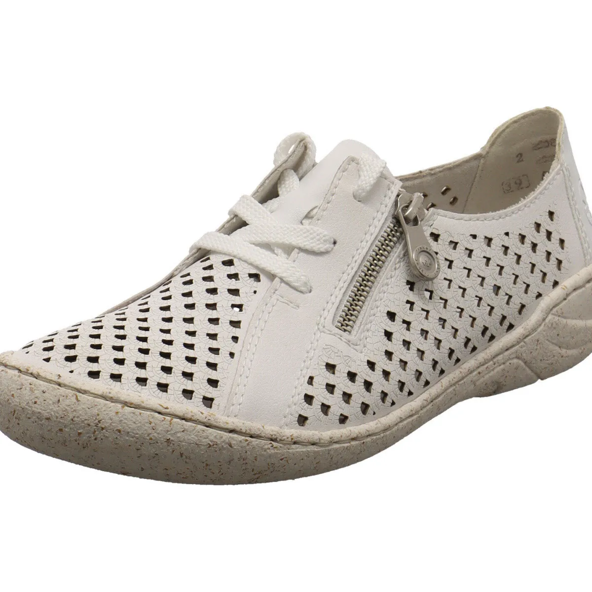Er wurde aus beschichtetem Echleder in Weiß gefertigt. Dabei ist er Allover mit kleinen Lasercuts versehen, die für ein luftiges Tragegefühl sorgen. Auf de Material selbst ist ein individuelles Muster angebracht. Mit dem seitlichen Reißverschluss kommst du ganz leicht in den Schuh und durch die Schnürung kannst du ihn genau auf deine Bedürfnisse anpassen. Die bewährte Antistress Innensohle ist wunderbar weich. Der Schuh ist wunderbar leicht und flexibel und ein toller Bequemschuh für den Alltag.
