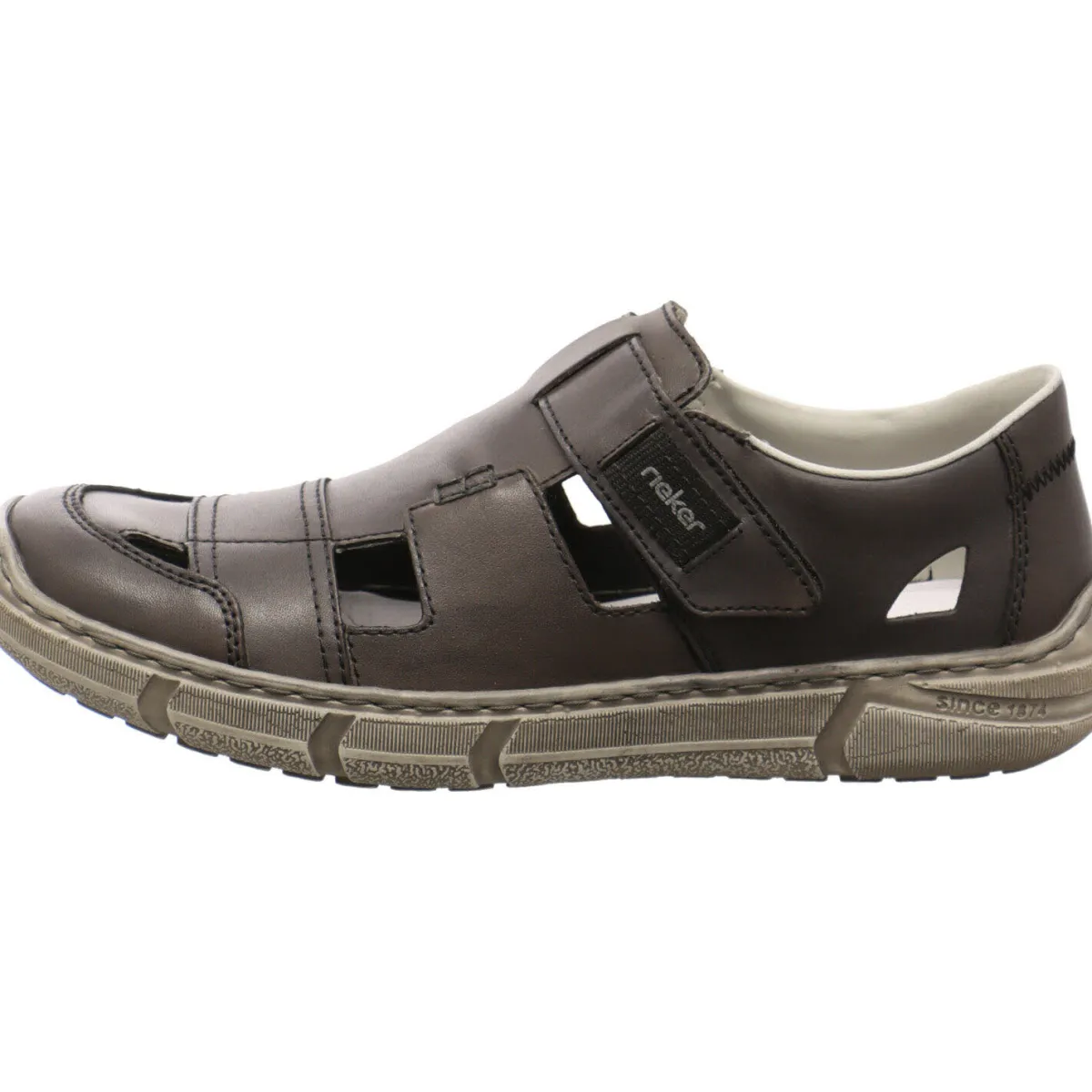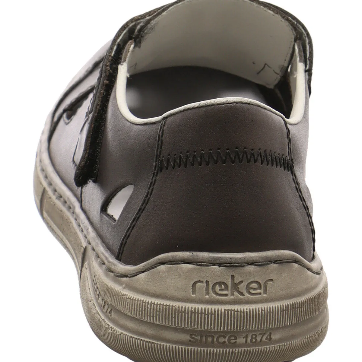 Der Schuh wurde aus hochwertigem Echtleder in dunklem Grau gefertigt und an der Seite mit verschiedenen Ziernähten versehen, die dem Look das gewisse Etwas verleiht. Der seitliche, verstellbare Riemen wird mit Klettverschluss geöffnet und geschlossen und ermöglicht einen komfortablen Einstieg und das die Rieker Anti Stress Echtleder Ausstattung macht den Schuh besonders bequem.