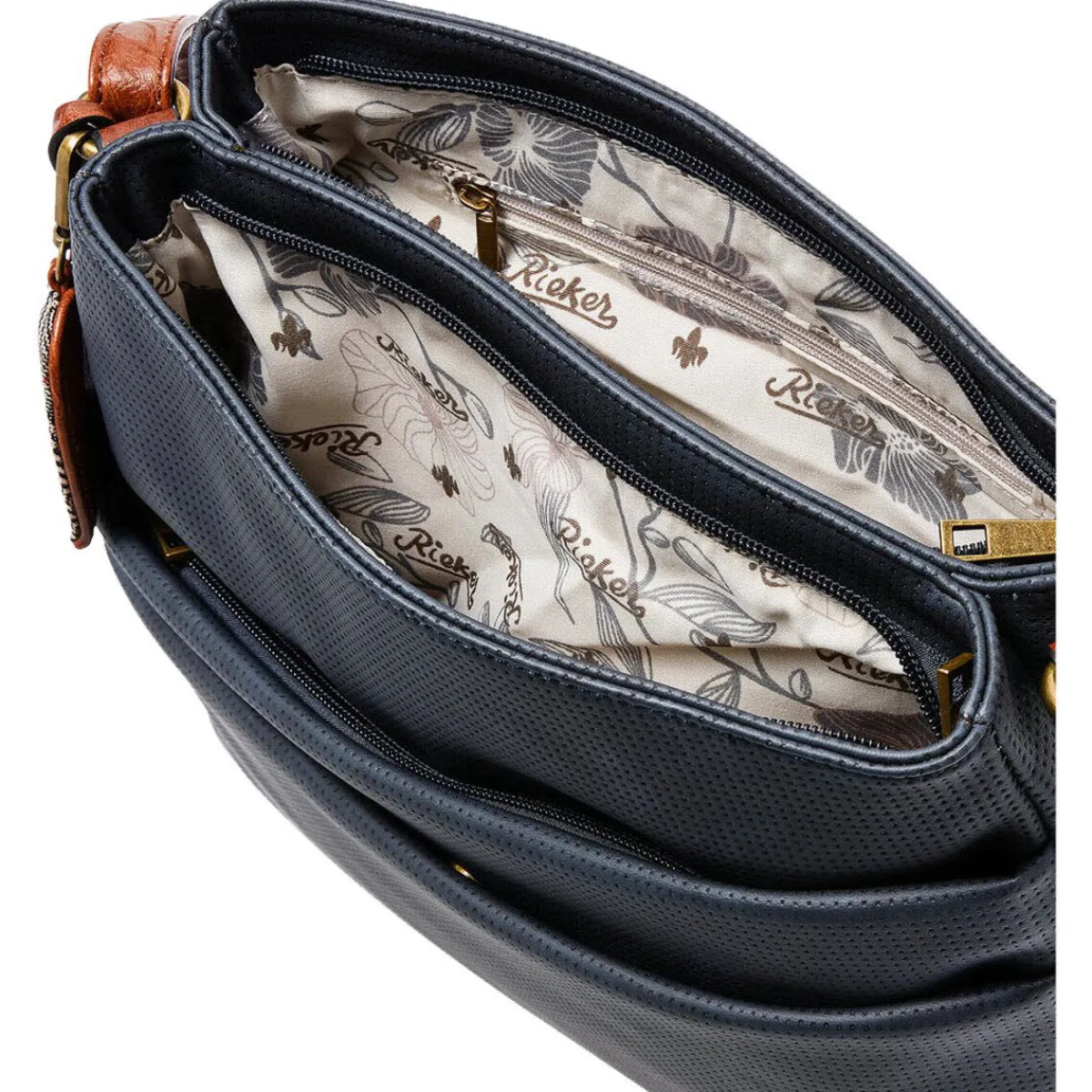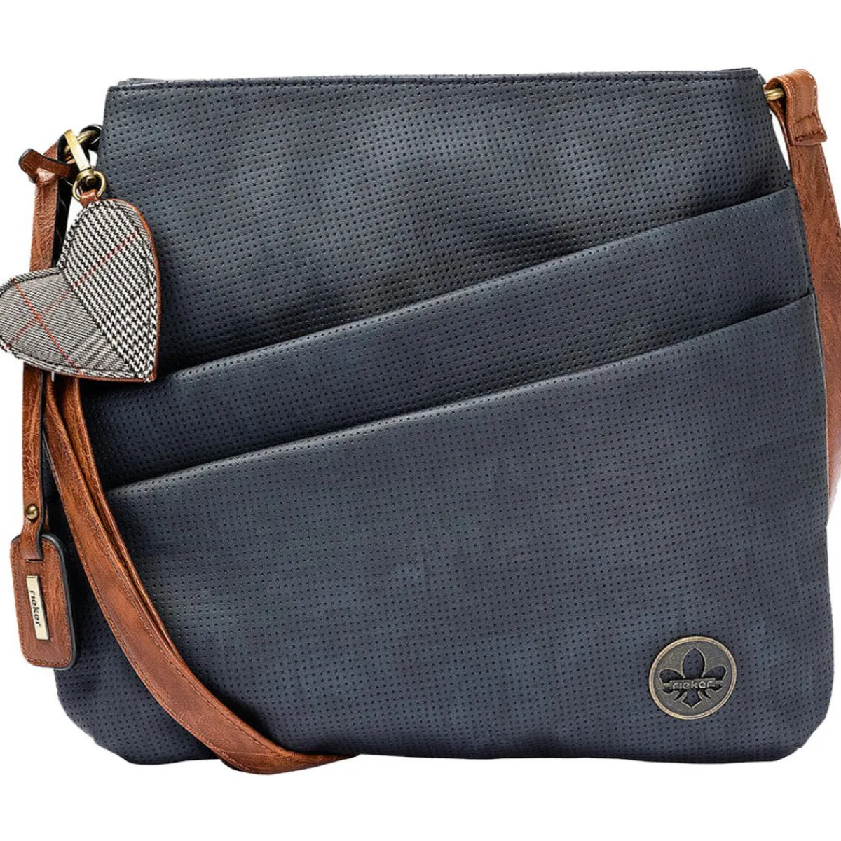Gefertigt aus hochwertig verarbeitetem Kunstleder in Ozean Blau ist sie ein Must-have für die kommende Saison. Ein besonderer Hingucker ist der Herzchen Anhänger mit angesagtem Hahnentrittmuster, sowie die Applikation mit der Lilie, das Markenzeichen der Firma Rieker. Das praktische Format bietet Platz für alles, was du beim Stadtbummel dabei haben möchtest oder was dich im Alltag begleiten soll..