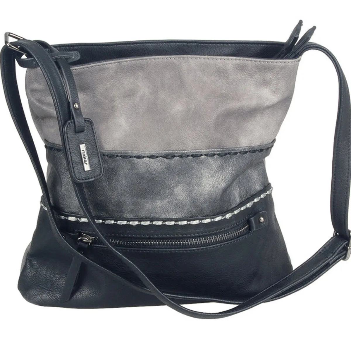 Gefertigt aus trendigem und pflegeleichtem Kunstleder in Grau mit Schwarz und mit Steppnähten und einem Colour Blocking versehen, wird sie zum absoluten Lieblingsstück.