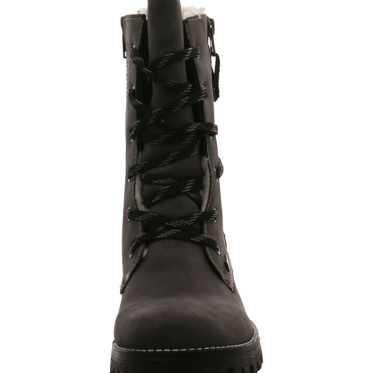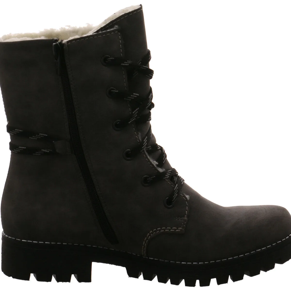 Soft weiches Kunstleder in Grau sorgt in Verbindung mit dem seitlichen Zierzipper sowie der auffälligen Schnürung bei dieser Schnürstiefelette für einen trendigen Look.