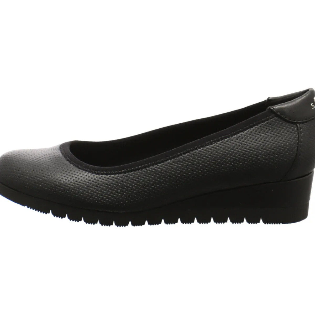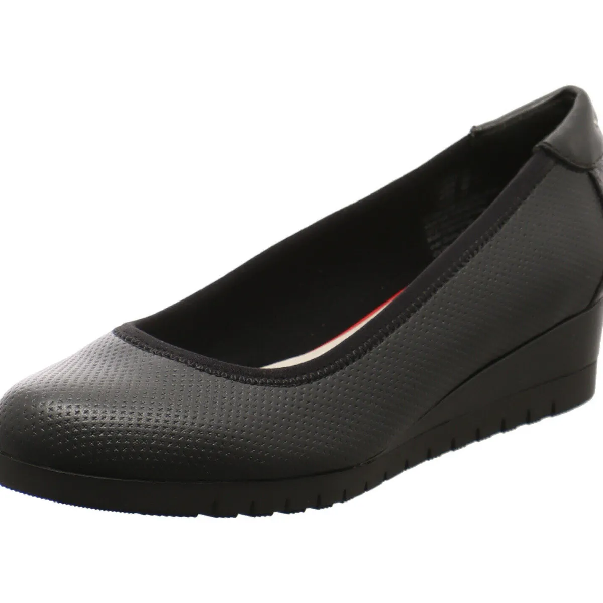 Das Obermaterial ist mit einer individuellen Prägung versehen, was den Schuh zu einem echten Hingucker macht. Das weiche Soft Foam Fußbett des trendigen Keilpumps passt sich innerhalb kürzester Zeit der Fußform an und sorgt somit für höchsten Tragekomfort. Der Keilabsatz mit seiner bequemen Höhe und die Laufsohle ist ein weiteres Highlight.