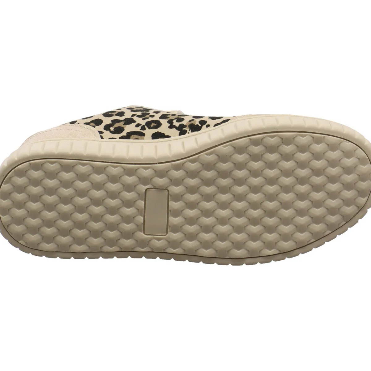 Es wurde aus Kunstleder in Beige gefertigt und begeistert sofort durch die Einsätze im angesagten Leo Animal print. Der Schaft ist angenehm weich gepolstert und durch die Gummischnürung und den Klettverschluss ist der Einstieg ganz einfach.