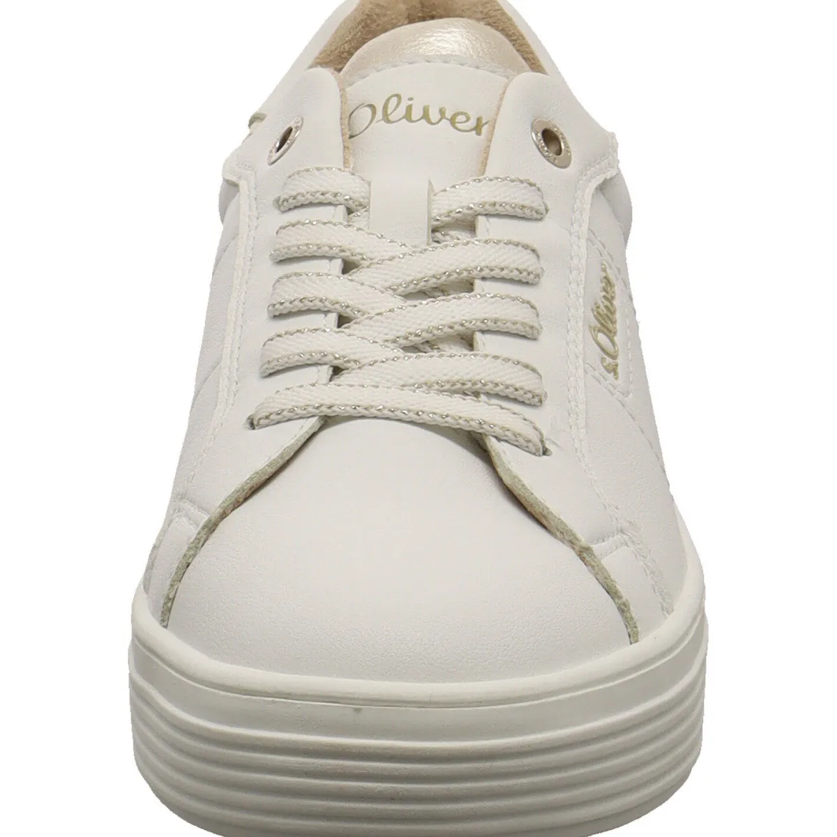 Das Obermaterial besteht aus pflegeleichtem Kunstleder in Weiß. Farbakzente in Gold machen den Schuh zu einem tollen Hingucker. Der Schaft ist angenehm gepolstert und mit der Schnürung kannst du die Passform optimieren. Die Innensohle ist angenehm gepolstert und als Wechselfußbett gearbeitet. Ein toller Sneaker im rundum gelungenen Design.