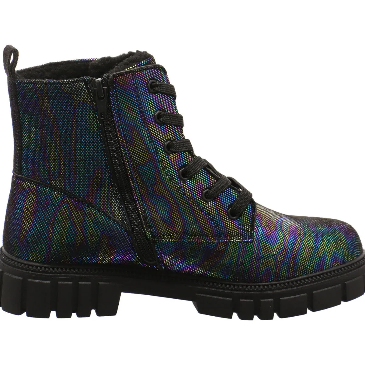 Das Obermaterial wurde aus Textil in gefertigt und mit einem besonderen Finish versehen. Highlight ist dabei das schimmernde, mehrfarbige Muster.