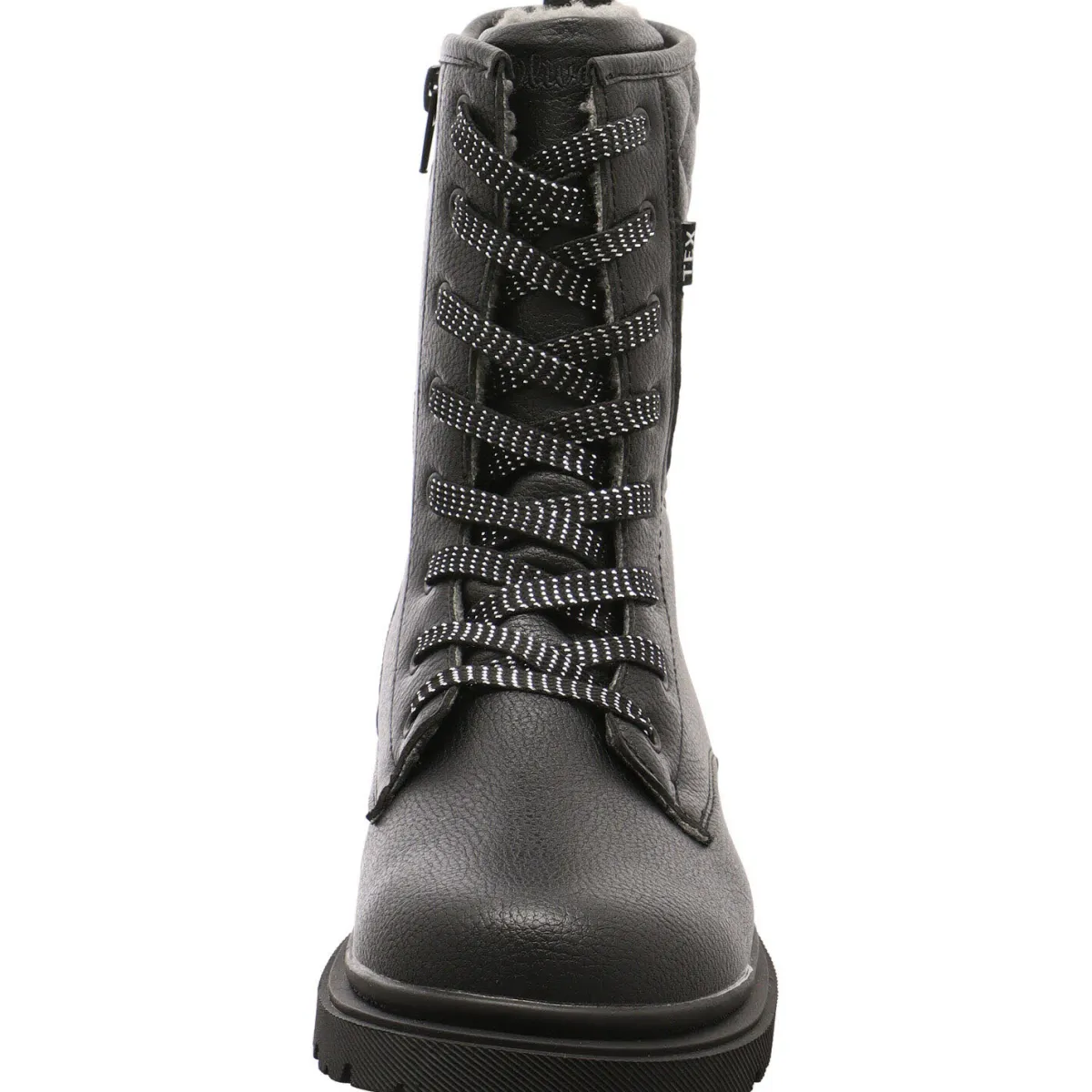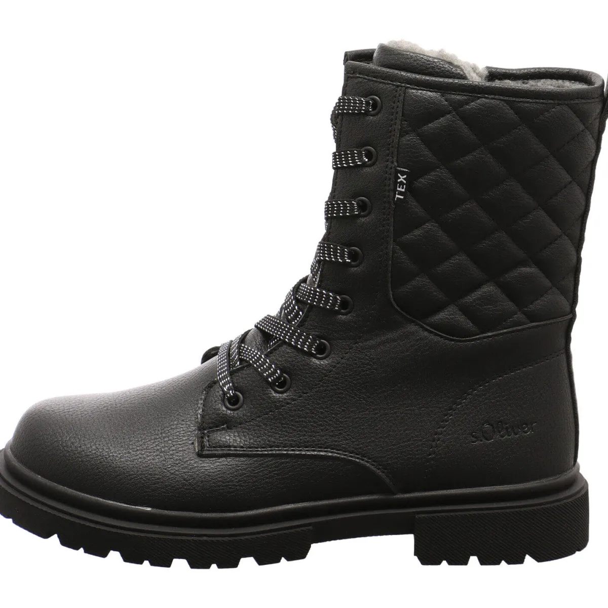 Gefertigt aus Kunstleder in Schwarz ist der Schaft mit einer schönen Prägung im Karo Muster versehen.