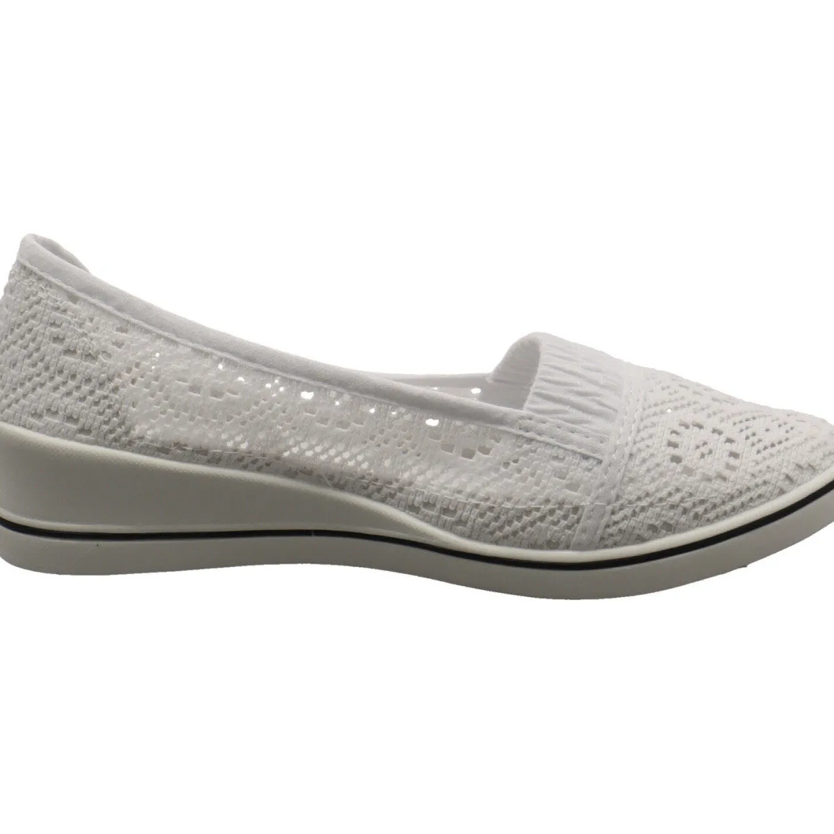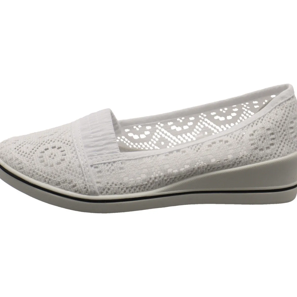 Das Obermaterial aus Textil in einer Strickoptik in Weiß ist robust und langlebig und verleiht dem Schuh einen sportiven Look.