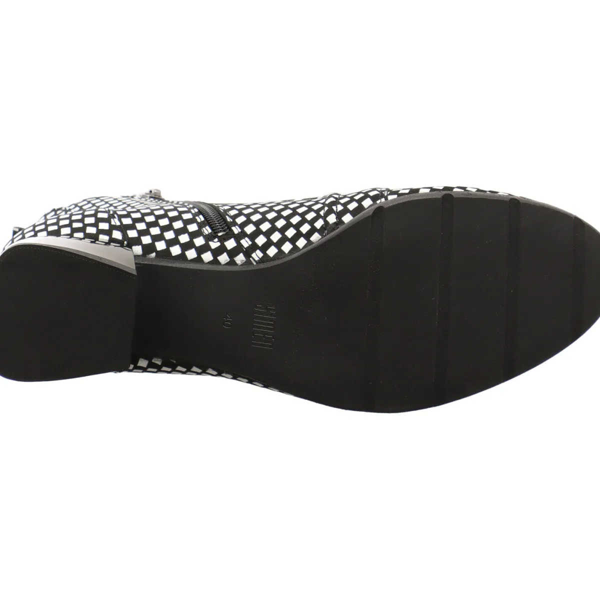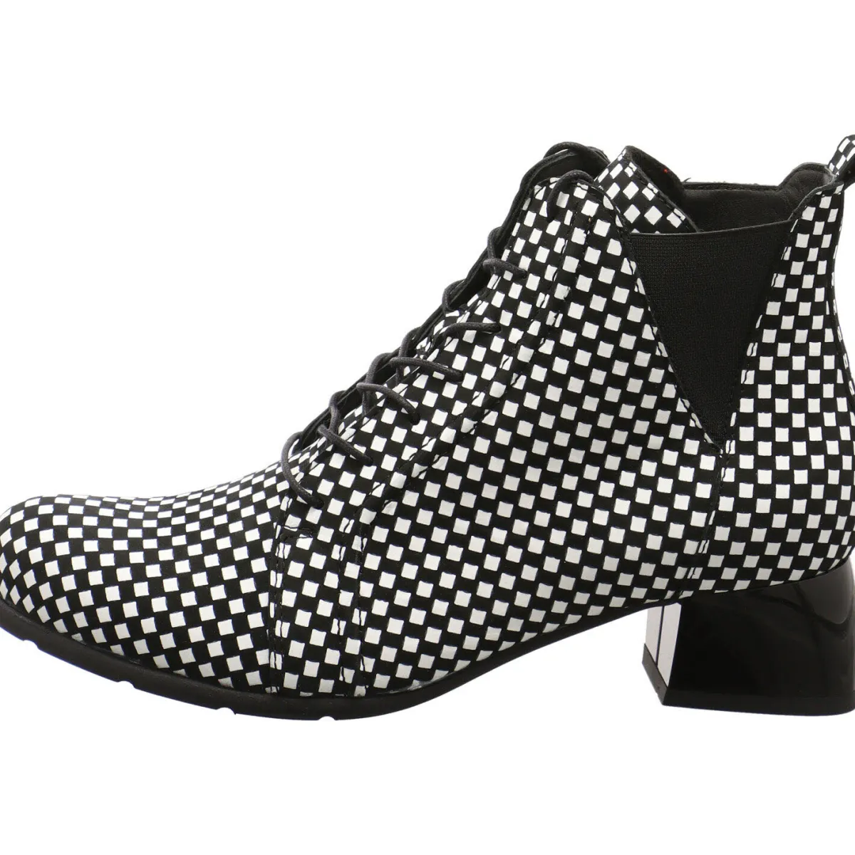 Das Obermaterial aus Echtleder presentiert sich im Karo Design in Schwarz, Weiß.