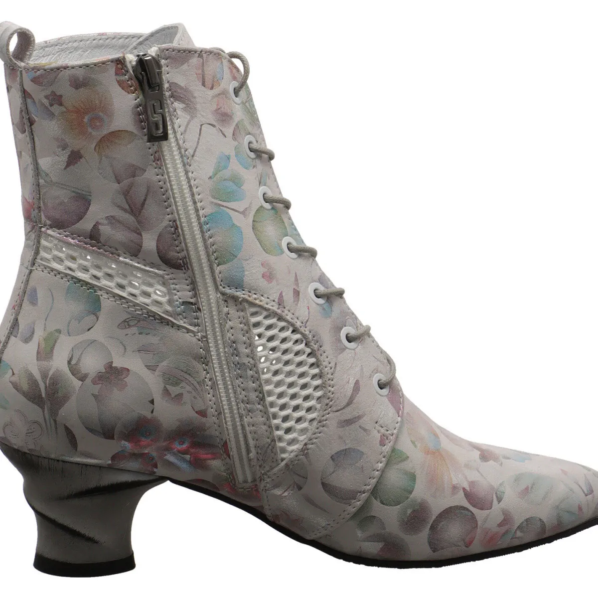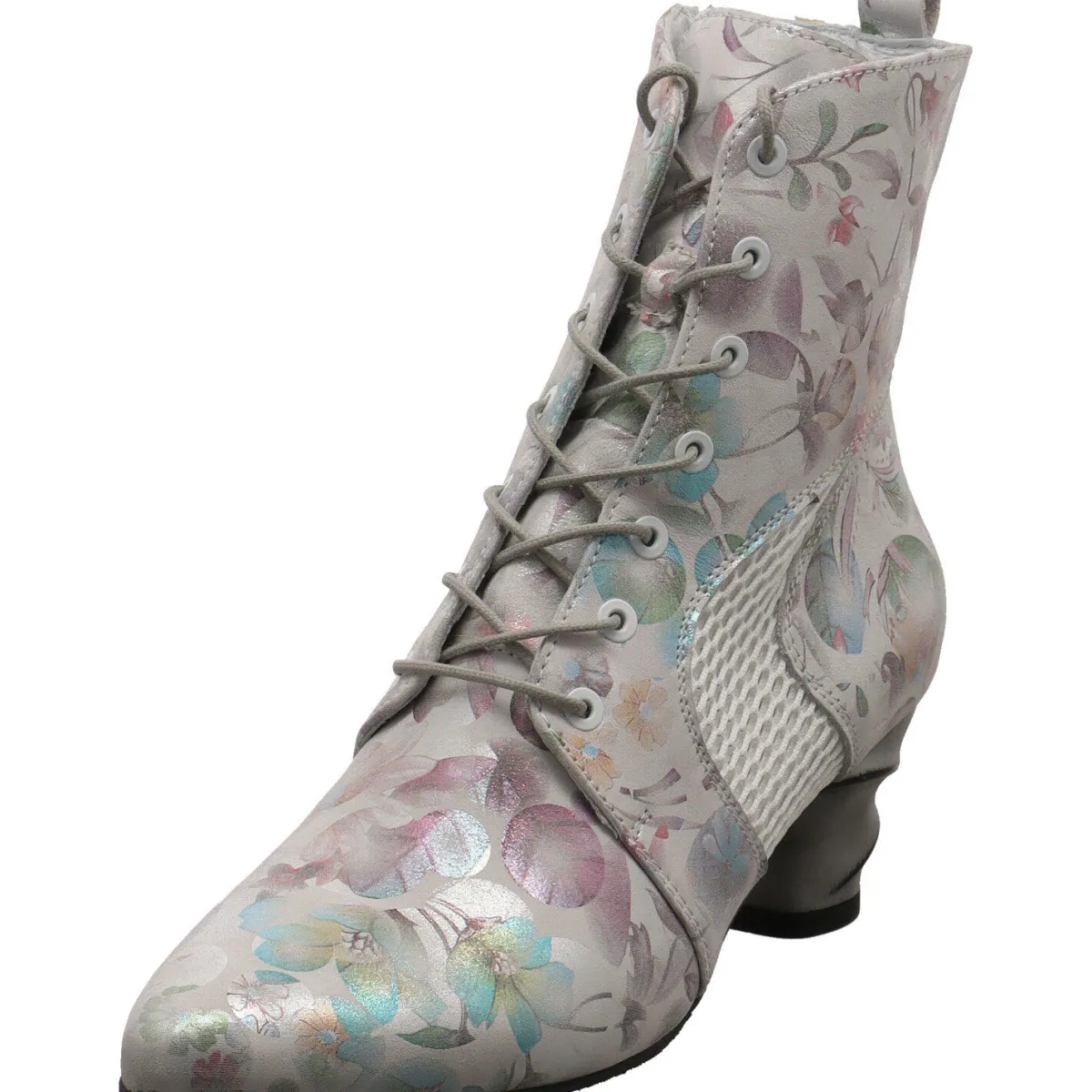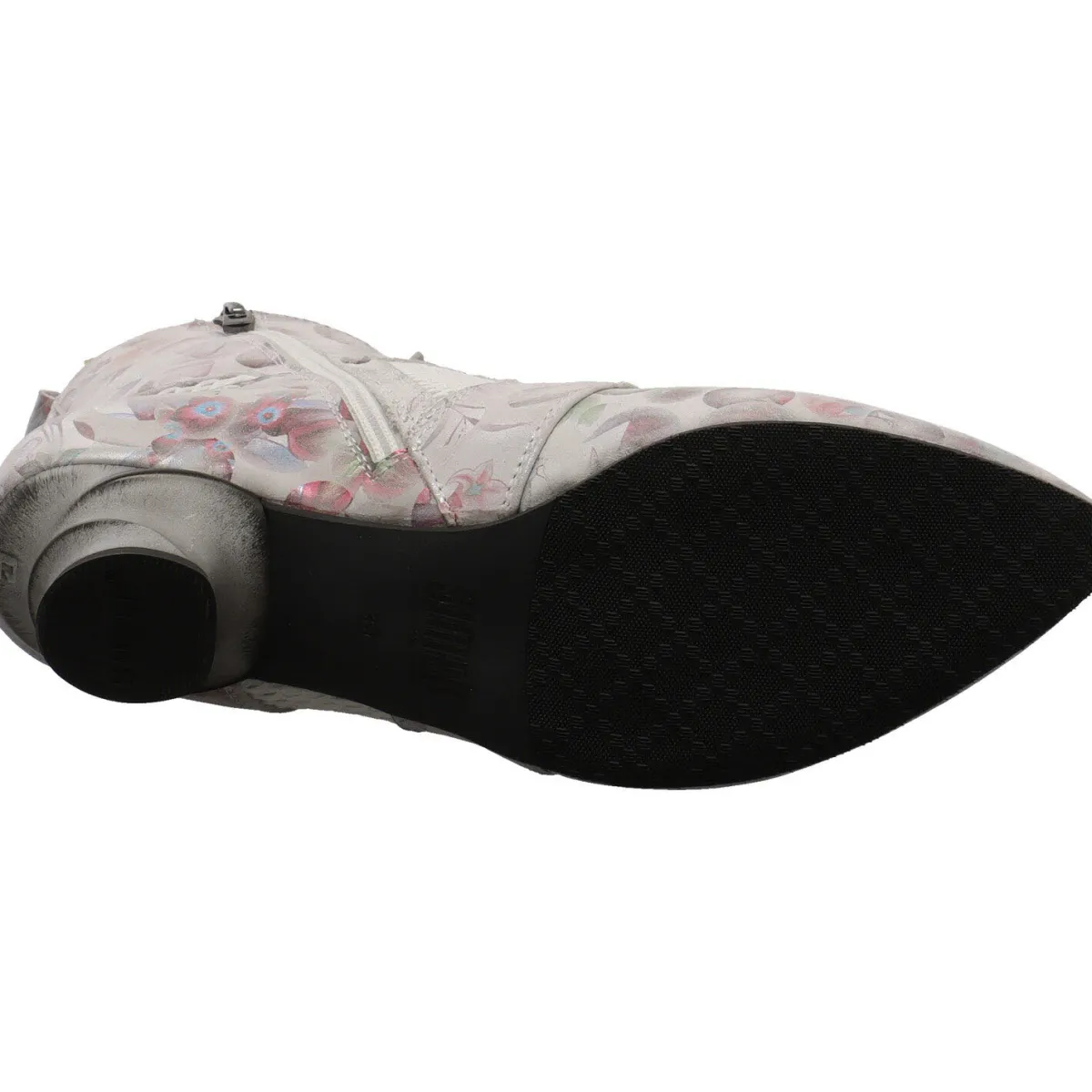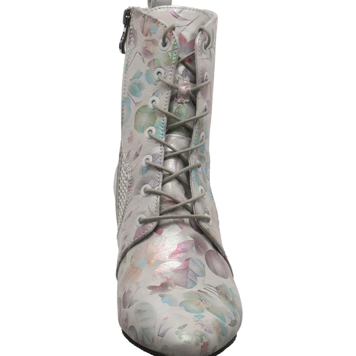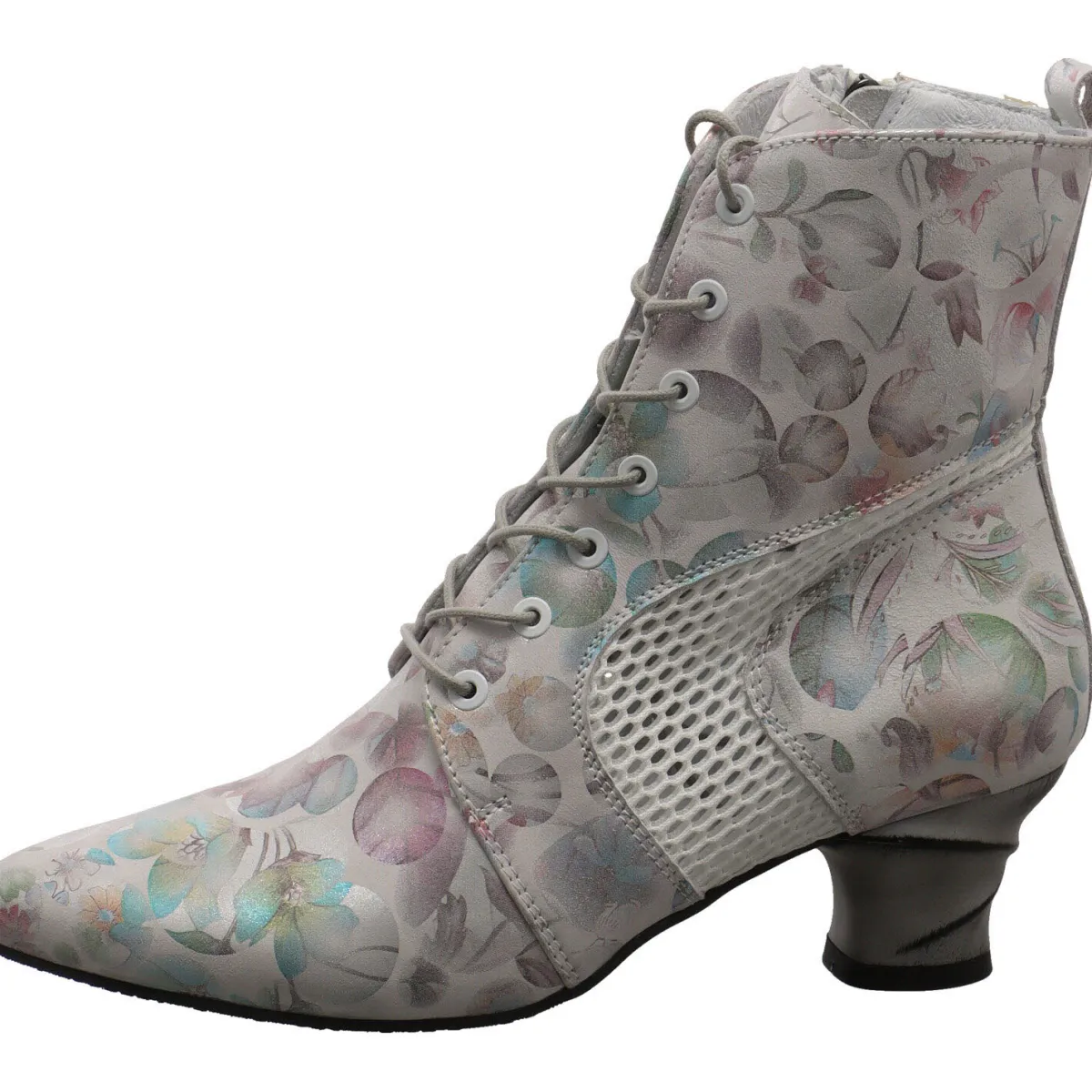 Sie wurde aus weichem Echtleder in Grau gefertigt und mit einem tollen Print verziert, der im Licht toll schimmert. Ein Texil Einsatz an den Seiten ist wie ein Netz eingearbeitet und sorgt dafür, dass du nicht so schnell ins schwitzen kommst. Durch die Lasche am Schaft und den seitlichen Reißverschluss ist der Einstieg ganz einfach und mit der Schnürung kannst du ihn optimal an deinen Fuß anpassen. Der individuell gestaltete Absatz zaubert lange Beine und die Innensohle ist weich gepolstert. Ein Schuh der besonderen Art mit dem du garantiert alle Blicke auf dich ziehst.