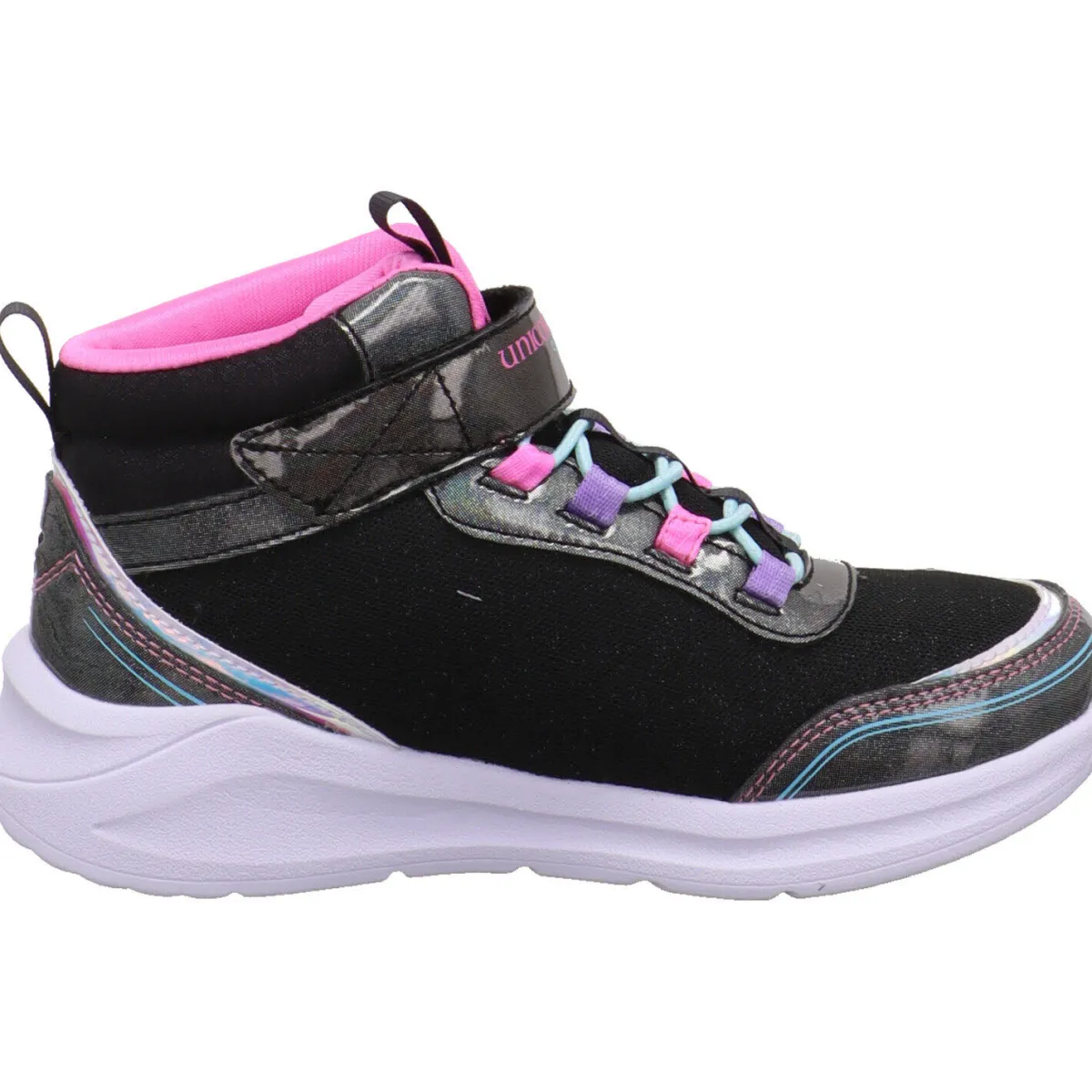 Er gehört zur Magical Collection Serie und hat ein farbenfrohes Einhorn an der Seite. Das Obermaterial in einem Mix aus Kunstleder und Textil in Schwarz ist mit einem tollen Schimmer versehen, der geheimnisvoll glitzert.
