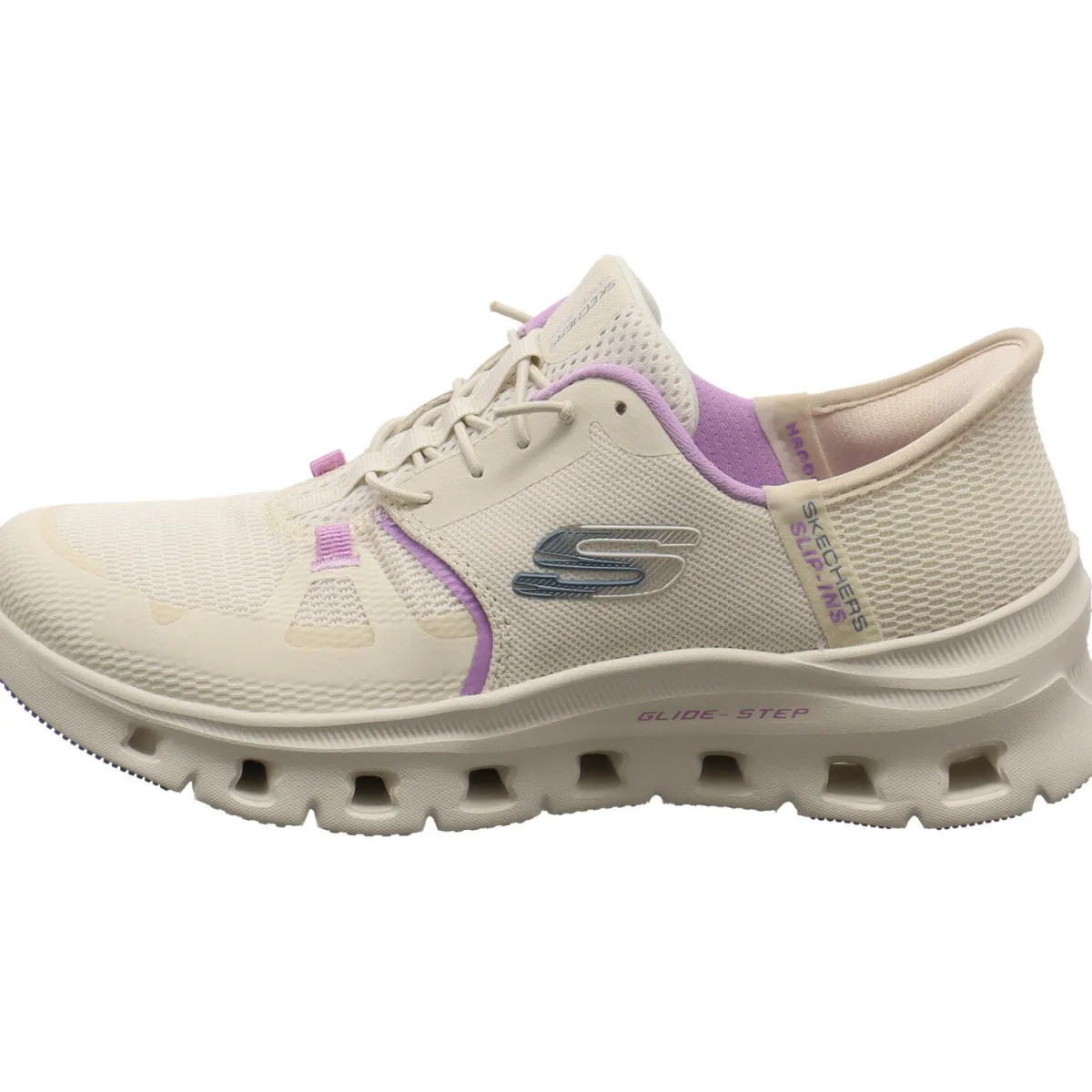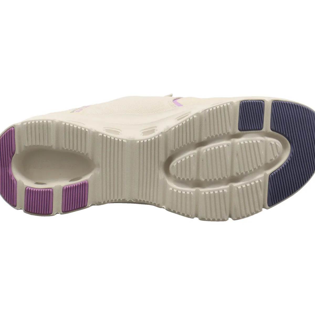 Das Obermaterial wurde aus einem gekonnten Mix aus Kunstleder und Textil Mesh in Beige gefertigt und ist voll vegan. Farbakzente in Lila machen ihn zu einem echten Hingucker.