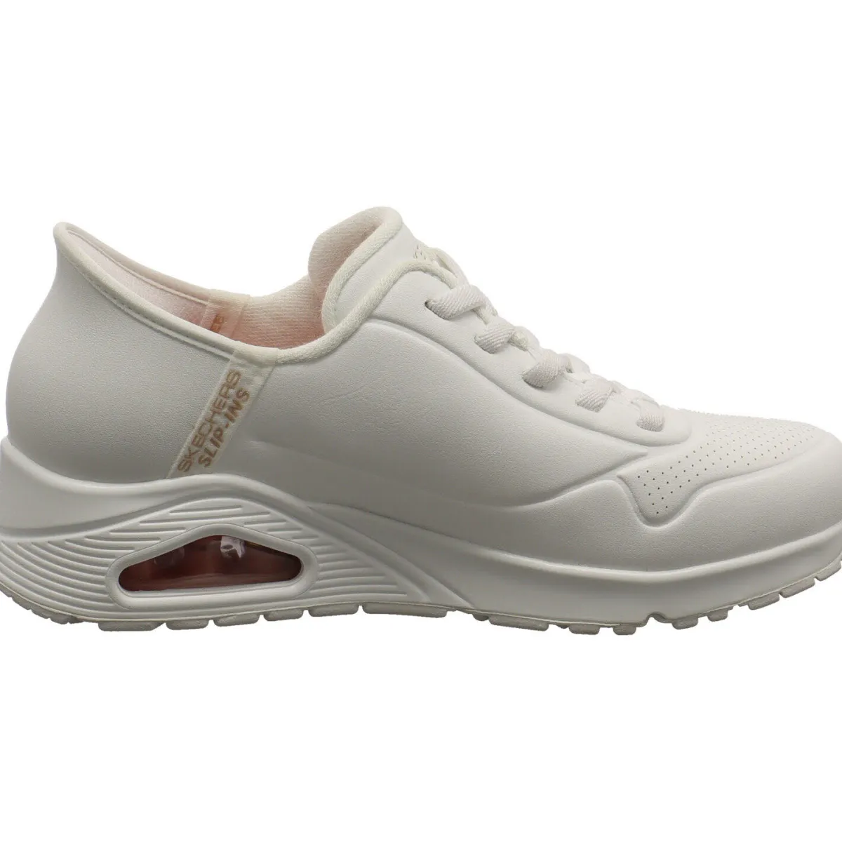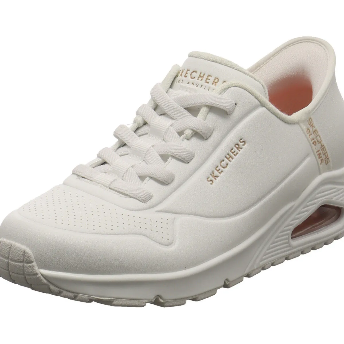 Für zusätzlichen Komfort sorgt die, in die Plateausohle integrierte Skech Air Luftkissen-gedämpfte Zwischensohle. Diese sorgt gleichzeitig für den typischen Look der Uno Modelle von Skechers.
