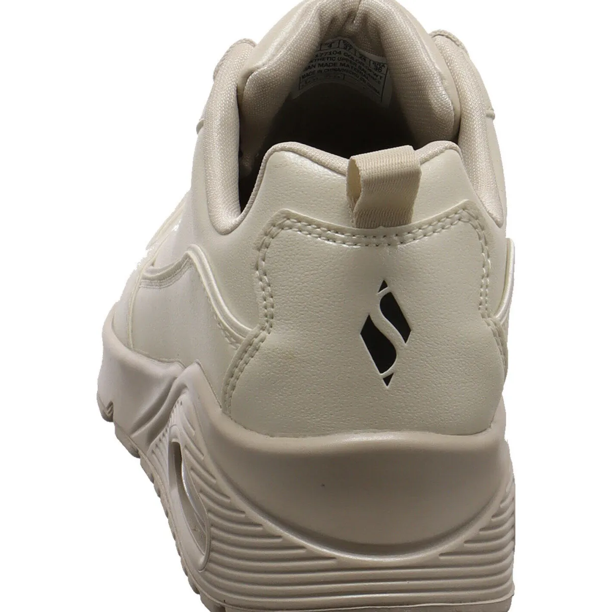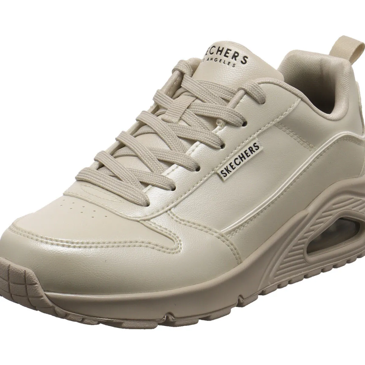 Mit der Schnürung kannst du ihn optimal an deinen Fuß anpassen, und durch die Lasche am Schaft kommst du leicht in den Sneaker. Der Schaft ist dabei angenehm gepolstert. Auch hier sind die Skechers Air-Cooled Memory Foam-Innensohle und eine sichtbare Skech-Air-Zwischensohle mit Luftkissenpolsterung verarbeitet.