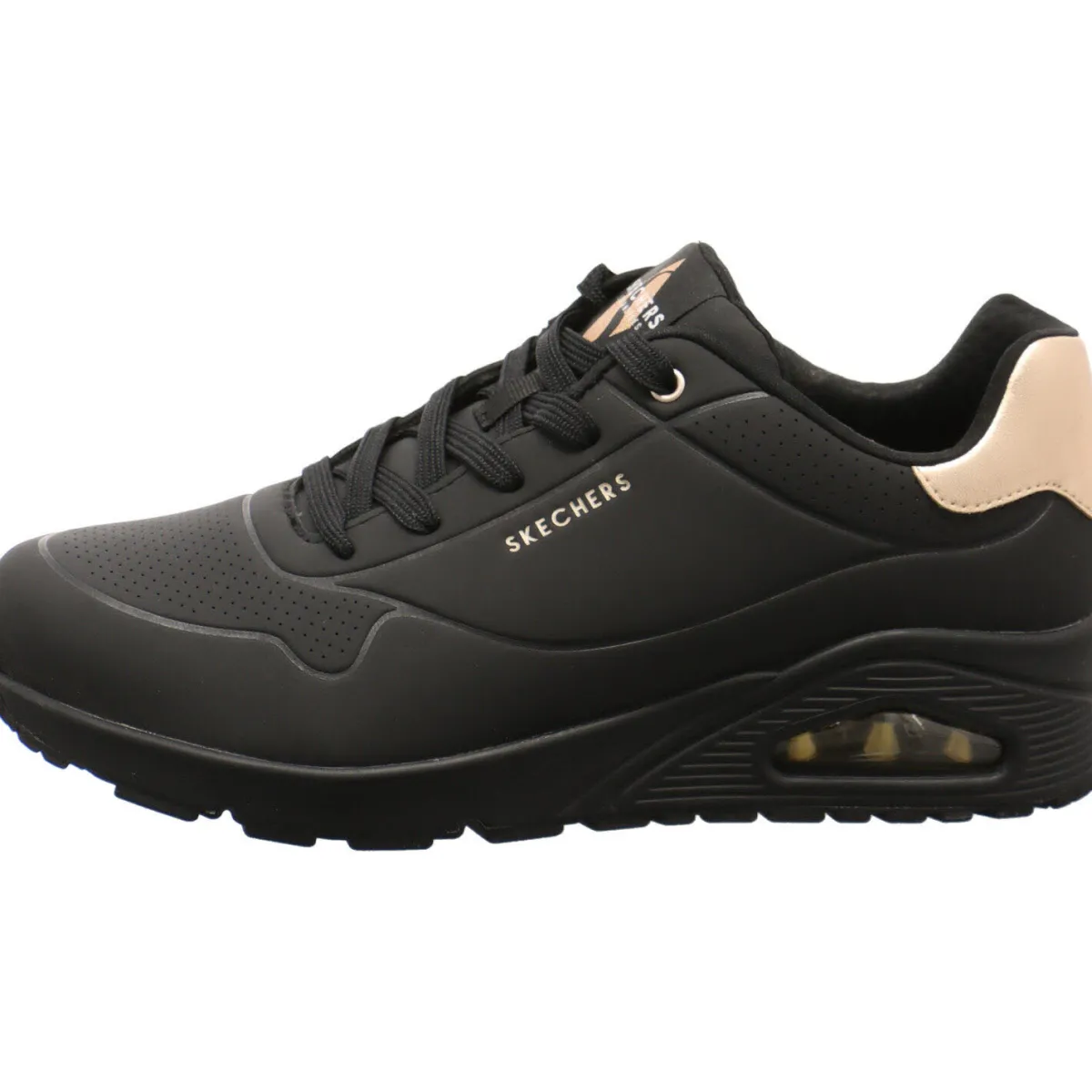Das Obermaterial aus Kunstleder in Schwarz ist mit kleinen Lasercuts und Farbakzenten in Gold versehen.