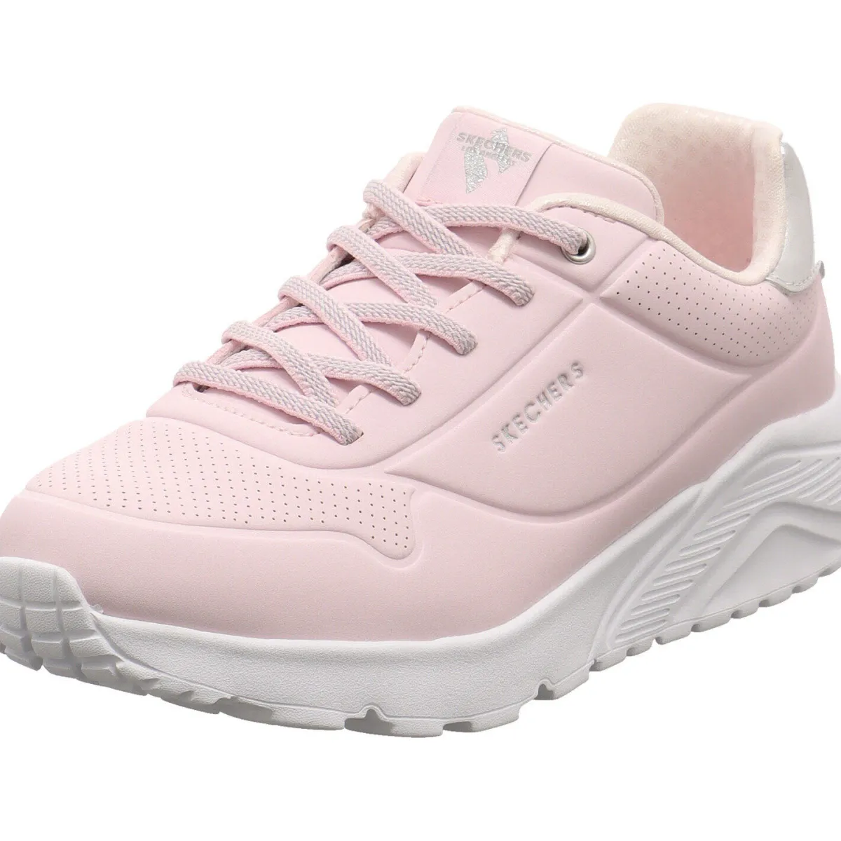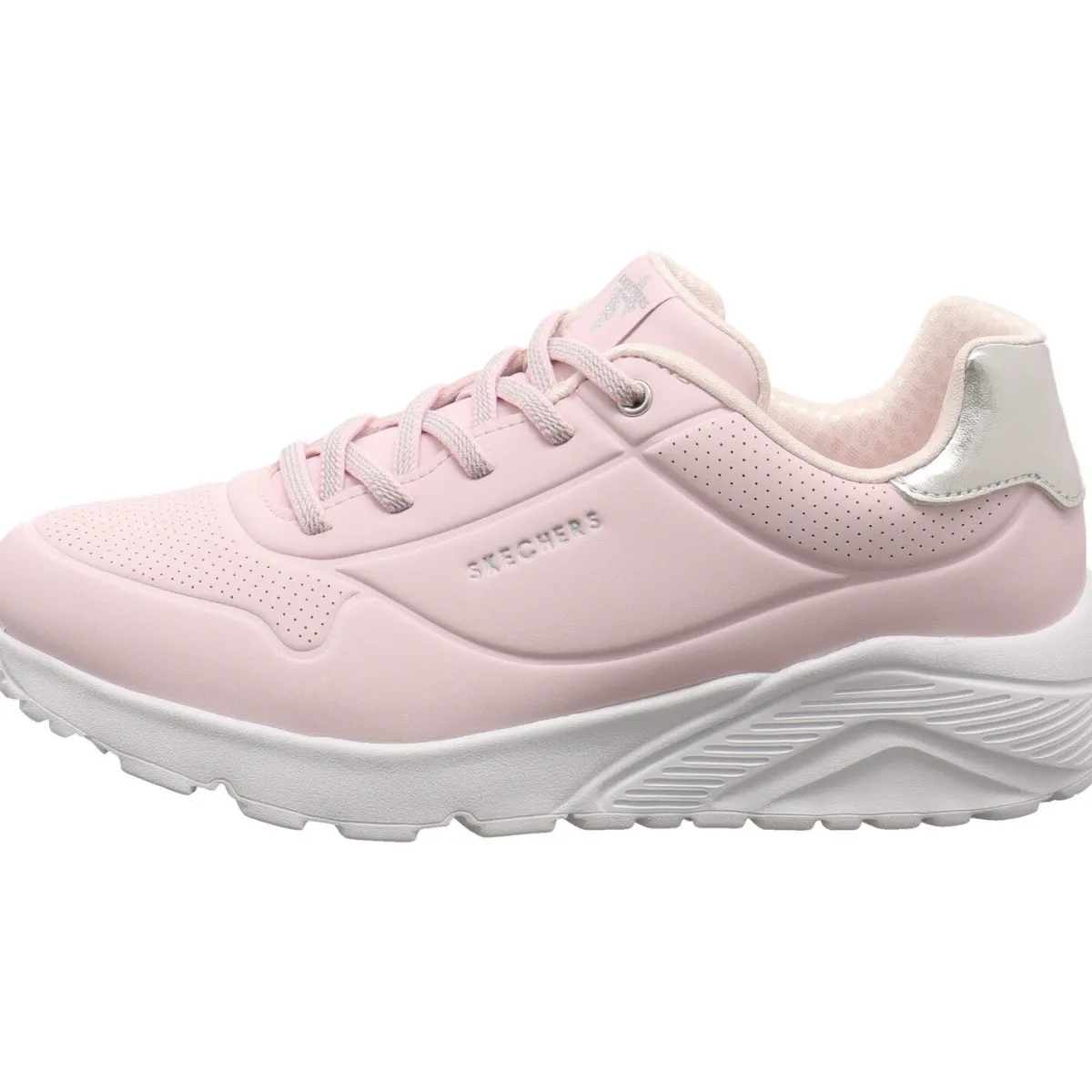 Das Modell Uno Lite Metallic Mode in Rosa ist aus Kunstleder gefertigt und mit einem Einsatz in Metallic Silber an der Ferse verziert. Kleine Lasercuts runden das modische Design dieses Kinder Schuh ab.