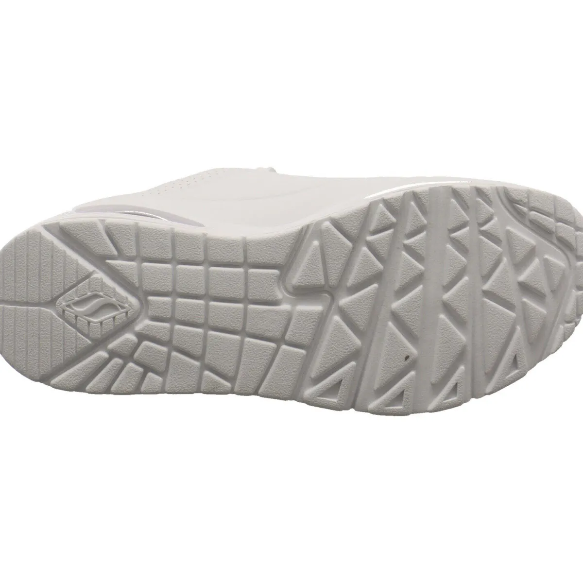 Das Obermaterial aus Kunstleder in Weiß ist mit einem tollen Herzmuster in hellem Lila versehen. Das auffällige Design des Sneaker ist aus der Zusammenarbeit des international bekannten Wandmalers James Goldcrown und Skechers entstanden.