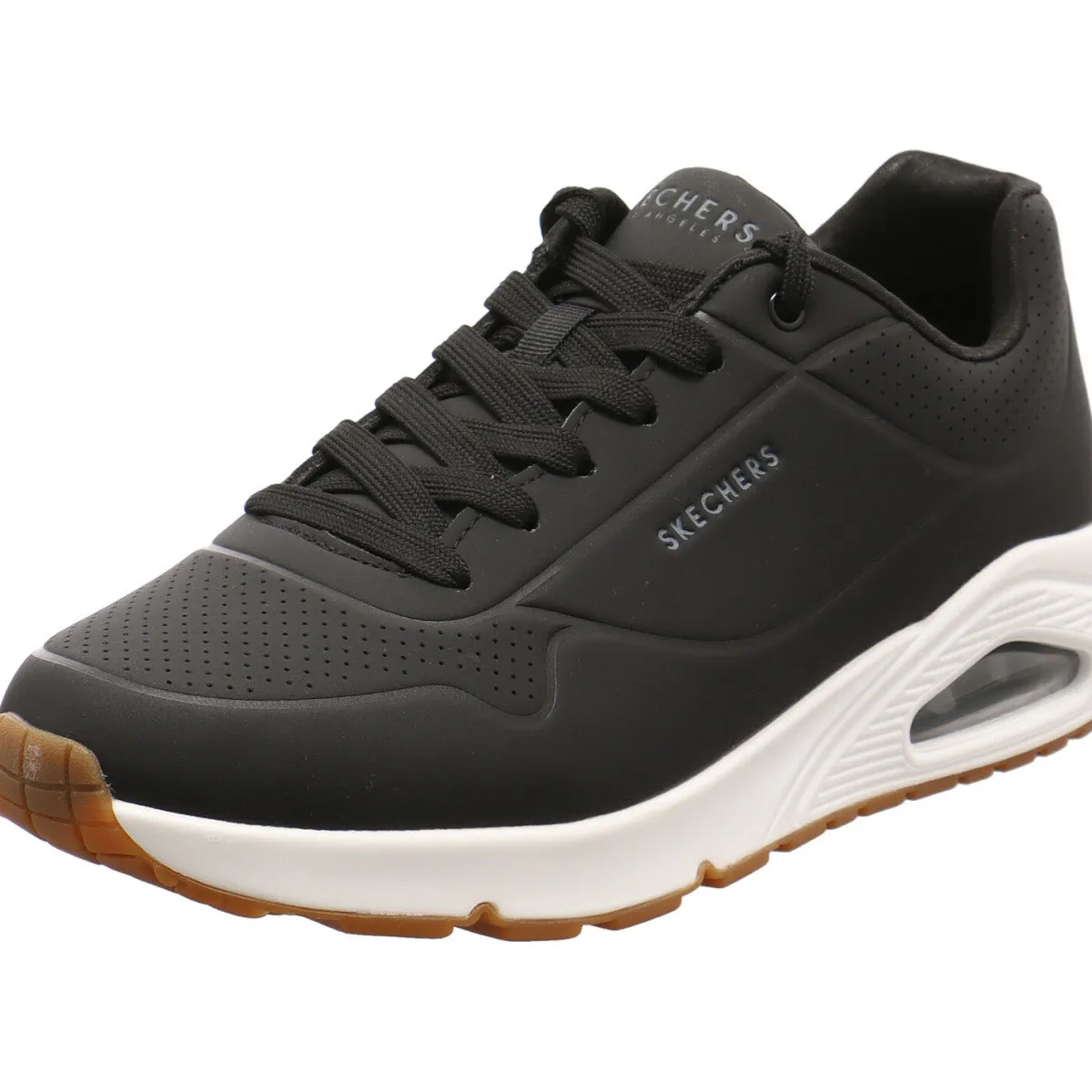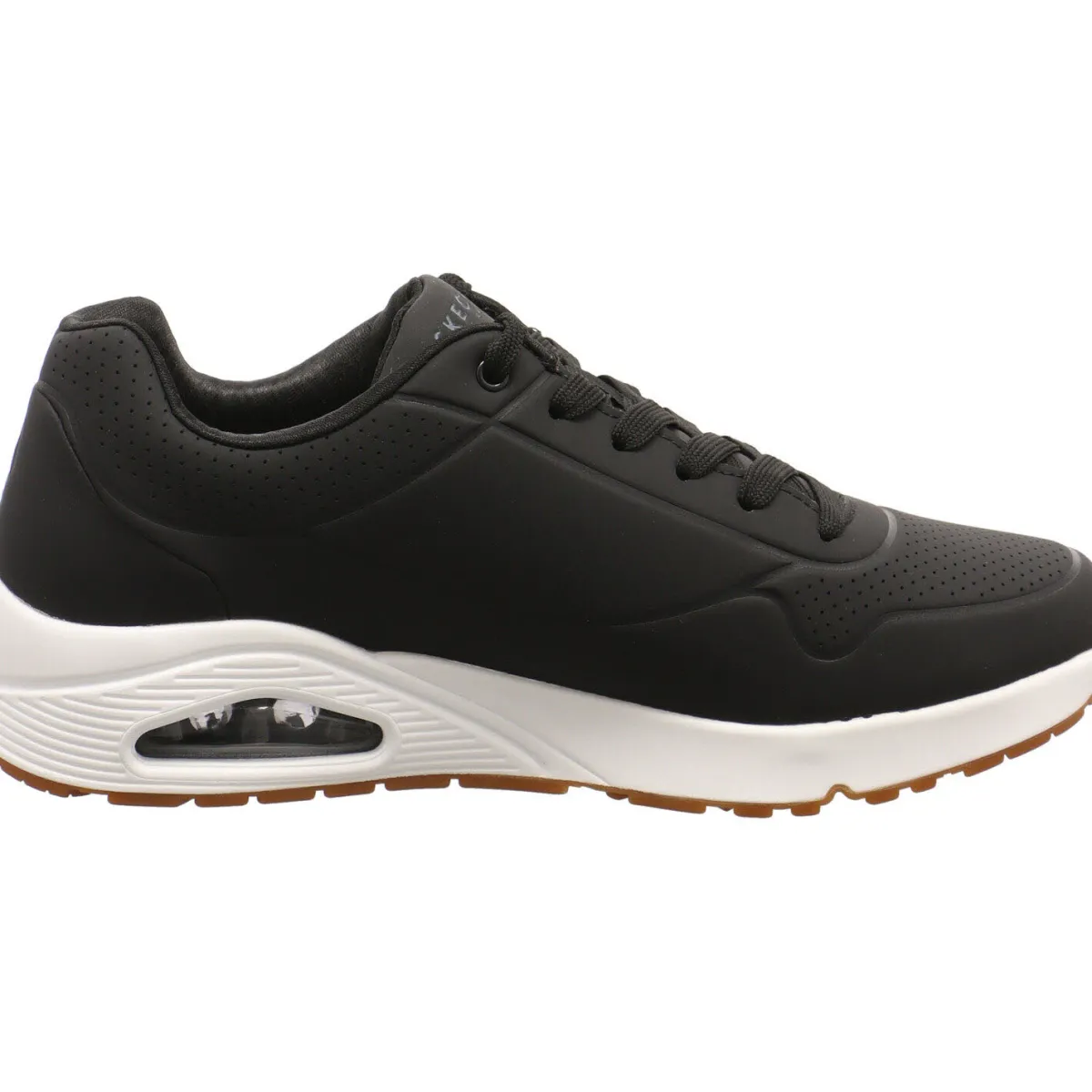 Die Skechers Air-Cooled Memory Foam Einlegesohle und eine sichtbare luftgepolsterte Skech-Air Zwischensohle sorgen für optimalen Komfort. Der Schaft ist angenehm gepolstert und durch die Schnürung kann der Schuh perfekt an den Fuß angepasst werden. Die Laufsohle ist Weiß und Braun abgesetzt und gibt einen tollen Kontrast.