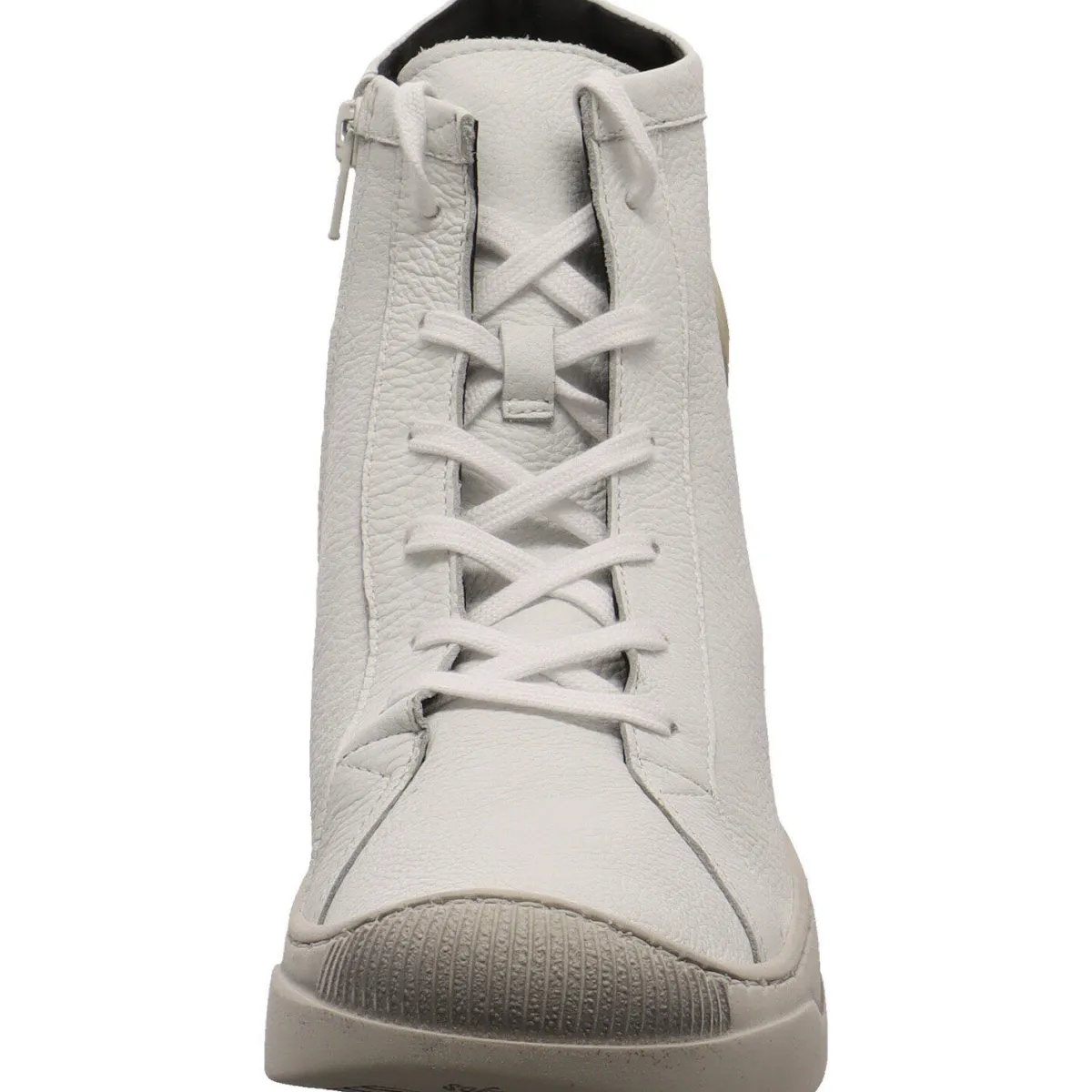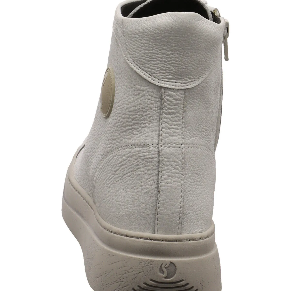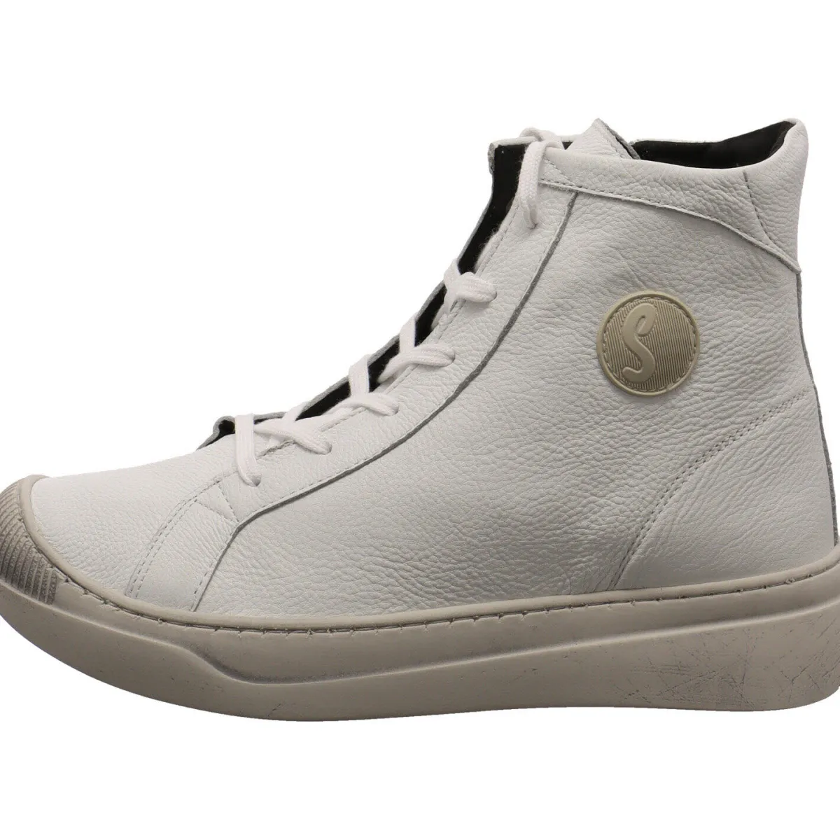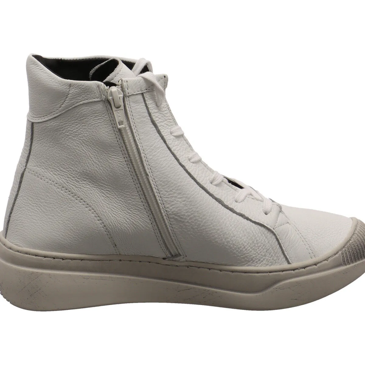 Er wurde aus soft, weichem Echtleder in Weiß gefertigt. Die hochgezogene Gummilaufsohle in Grau, macht ihn robust gegen Nässe und verleiht dem Schuh seinen modischen Look.