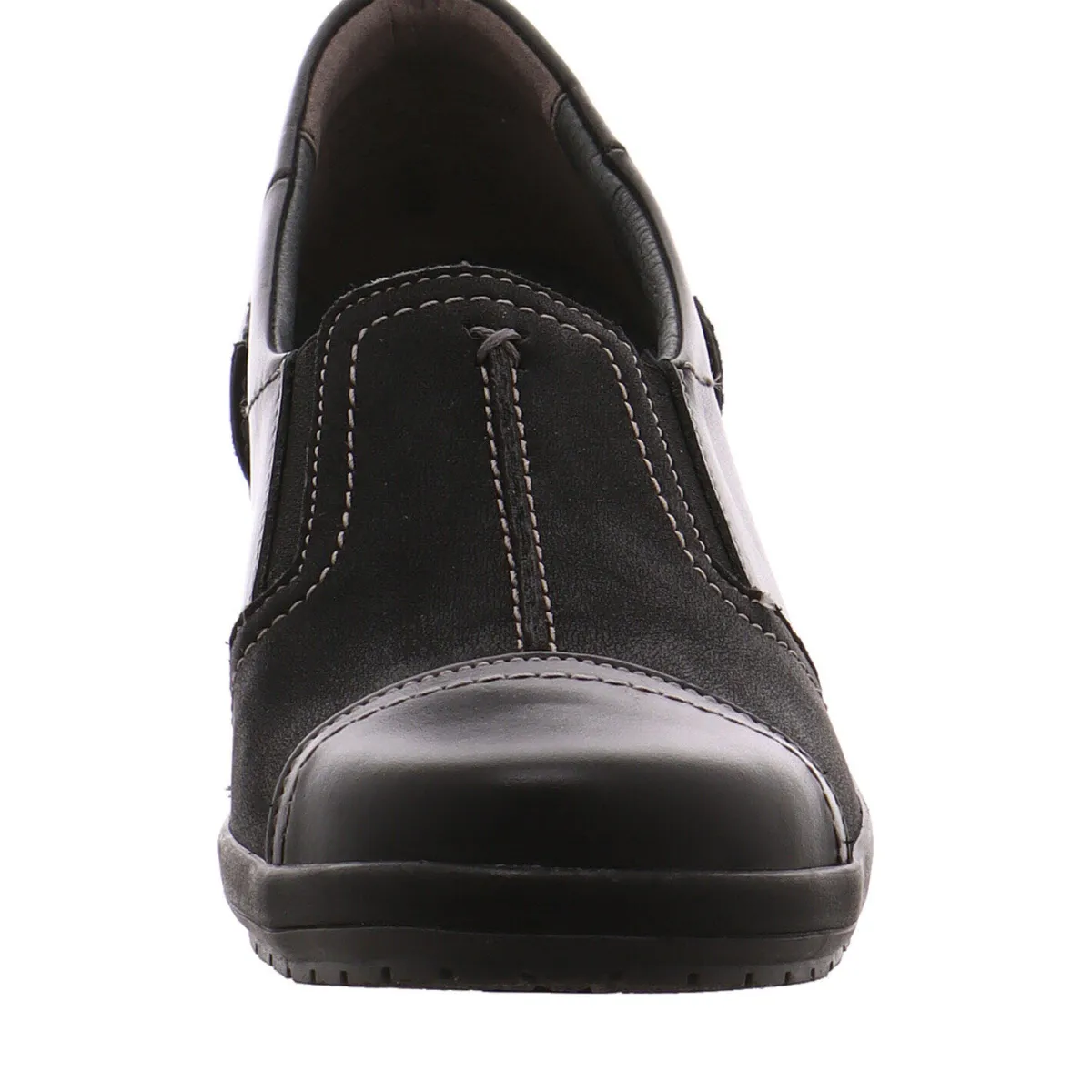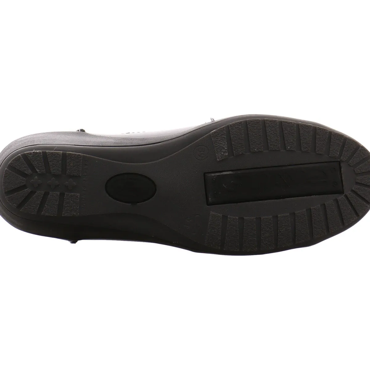Der Keilabsatz und die leicht profilierte Synthetiklaufsohle runden das Gesamtkonzept ab.