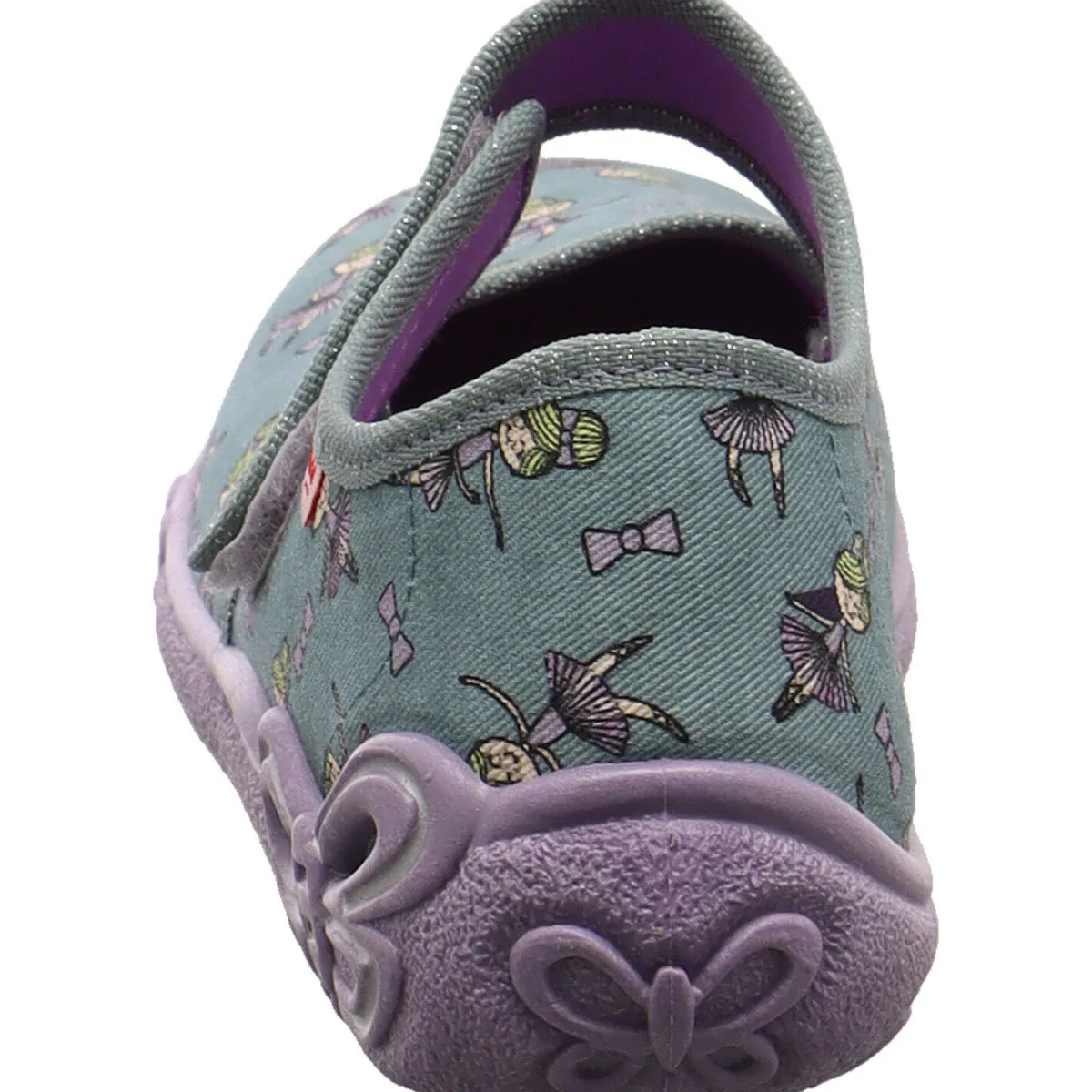 Gefertigt aus Textil in Grün mit einem Allover Print einer Ballerina, bietet er besten Komfort und begeistert jedes Mädchen. Durch die flexible und anatomisch geformte Laufsohle und dem verstellbaren Klettverschluss lässt sich der Schuh optimal den Kinderfüßen anpassen und ist zudem besonders leicht.