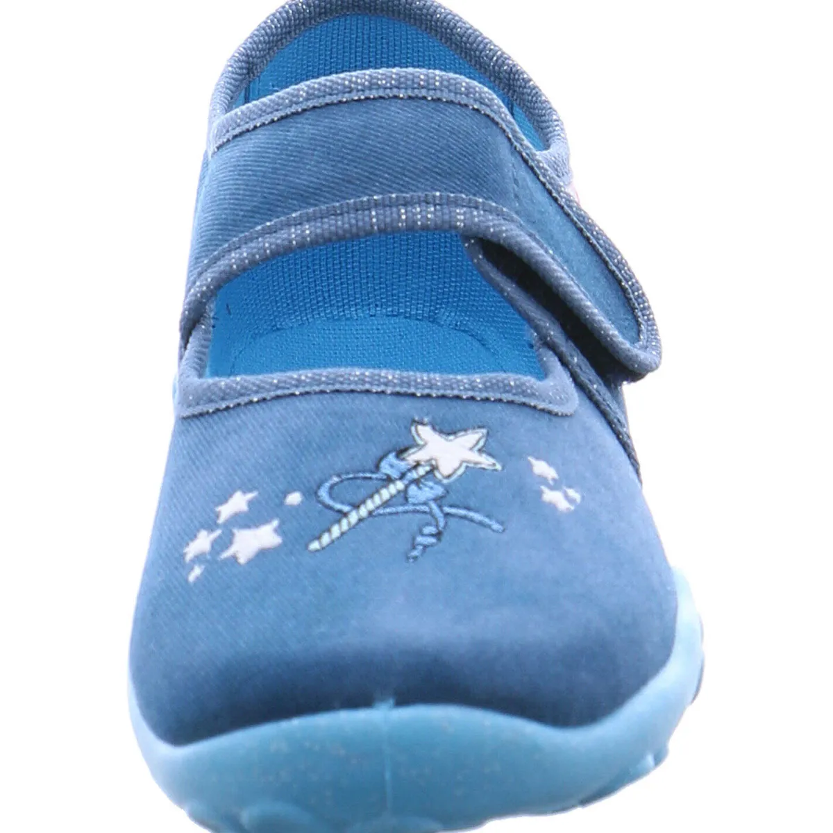 Gefertigt aus Textil in Blau Denim mit einem Zauberstab als Stickerei auf dem Blatt, bietet er besten Komfort und begeistert jedes Mädchen. Der Einsteig und Klettverschluss ist mit einem Textil Band mit Glitzer versehen.