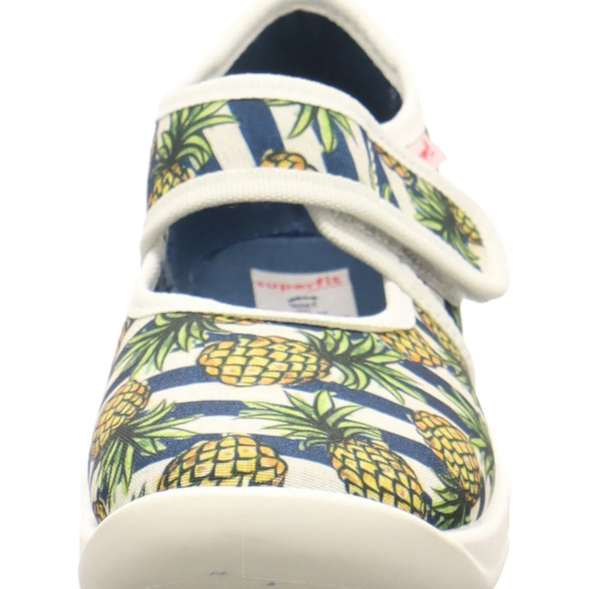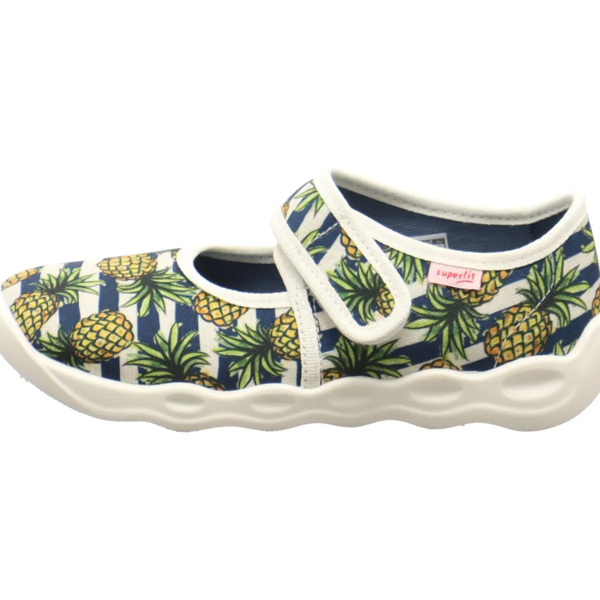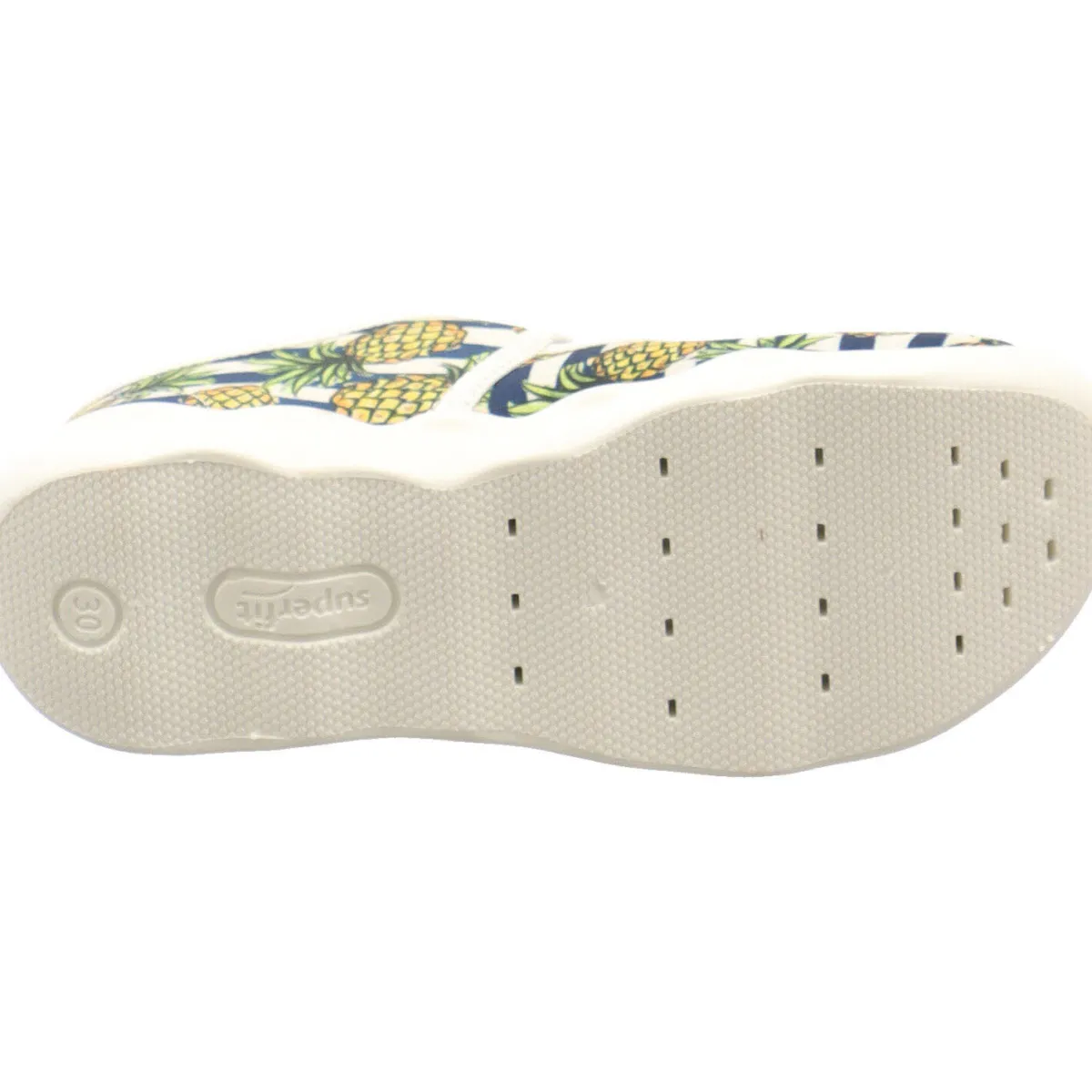 Gefertigt aus weichem Textil begeistert das Blau/Weiß gestreifte Obermaterial mit den aufgedruckten Ananassen, welche einen sommerlichen Look zaubern. Er bietet besten Komfort und begeistert jedes Mädchen.