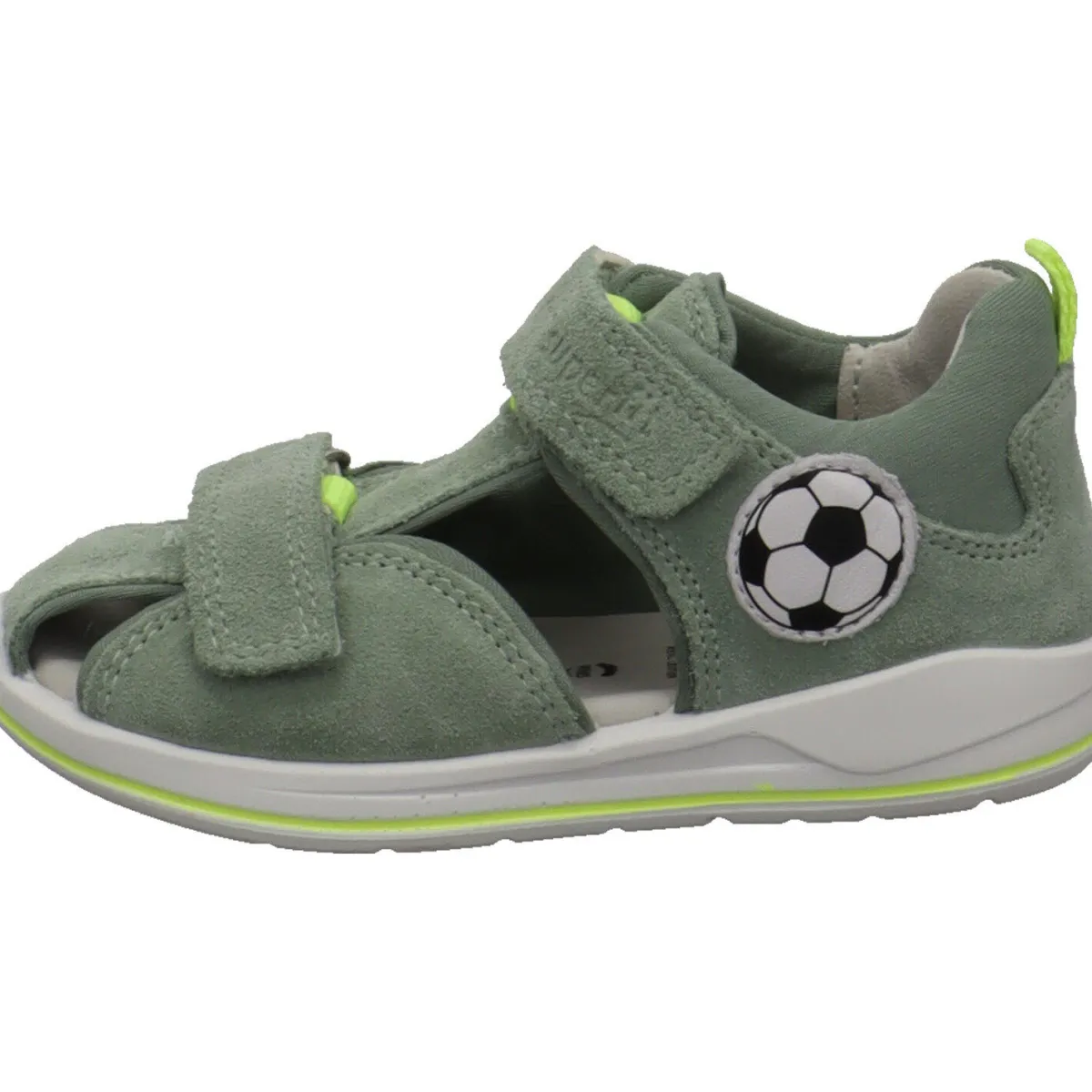 Sie wurde aus weichem Echtleder in Grün gefertigt. Die Einsätze aus Textil machen ihn besonders weich und angenehm zu tragen. Durch den doppelten Klettverschluss kann der Schuh optimal an den Fuß angeapsst werden. Als Hingucker ist an der Seite ein Fußball angebracht und ein Highlight für die Jungen. Akzente in Neon Gelb runden den Look perfekt ab. Die Laufsohle in Weiß ist angenehm leicht und flexibel. Durch den geschlossenen Zehenbereich schützt er die kleinen Füße optimal.