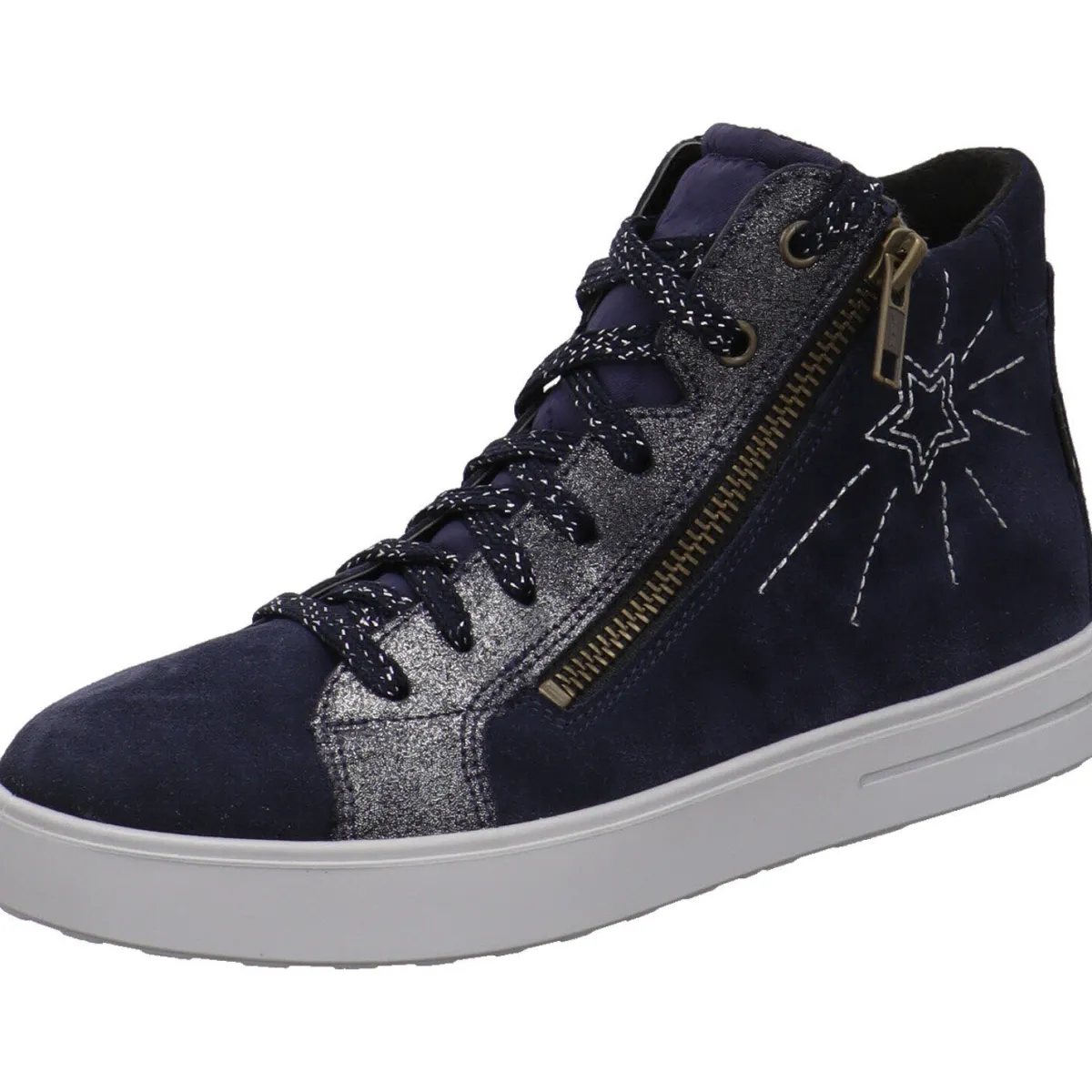 Dabei ist an der Seite vom Schaft ein Stern als Stickerei angebracht und entlang der Schnürsenkelösen geht ein Metallix Schimmer. So wird der Schuh zu einem echten Eyecatcher und ein Must Have für jedes Mädchen.