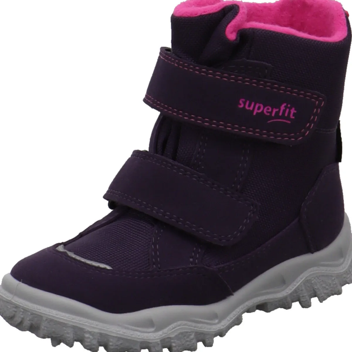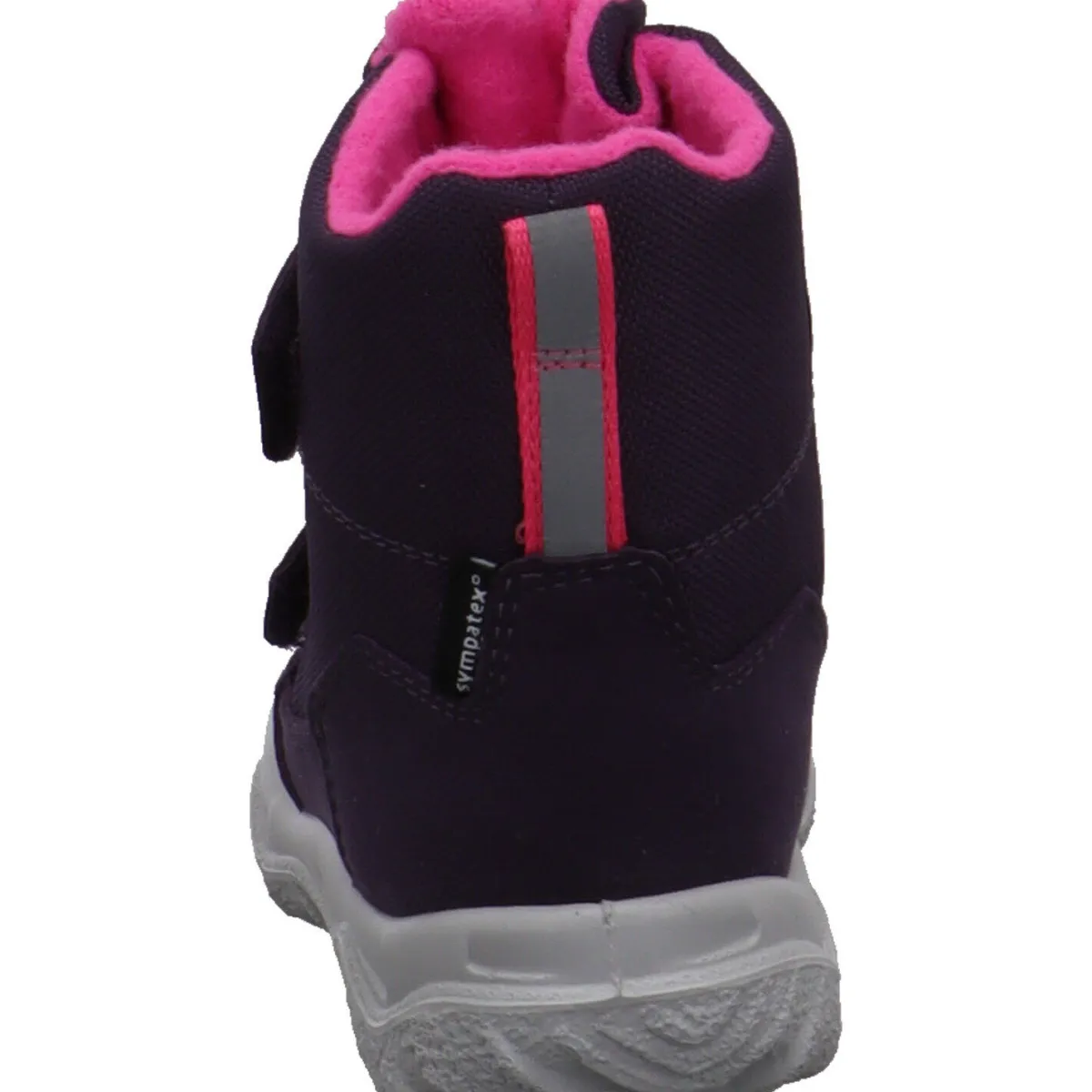 Der Winterstiefel für Kinder ist ein Allrounder im Alltag und beim Schlittenfahren. Das Obermaterial wurde aus Textil in Lila gefertigt.