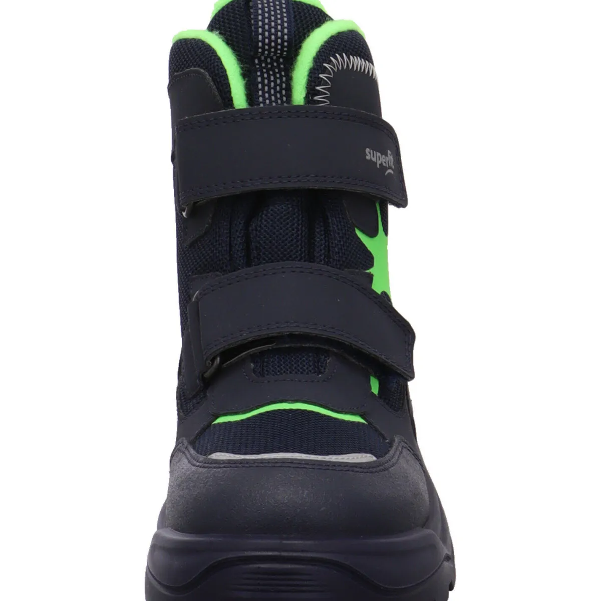 Der Winterstiefel ist bestens geeignet für kalte und nasse Tage. Das Obermaterial wurde aus Textil und Synthetik in Blau gefertigt.