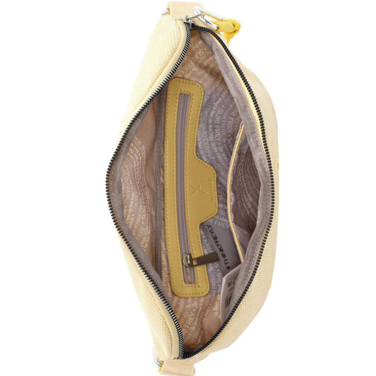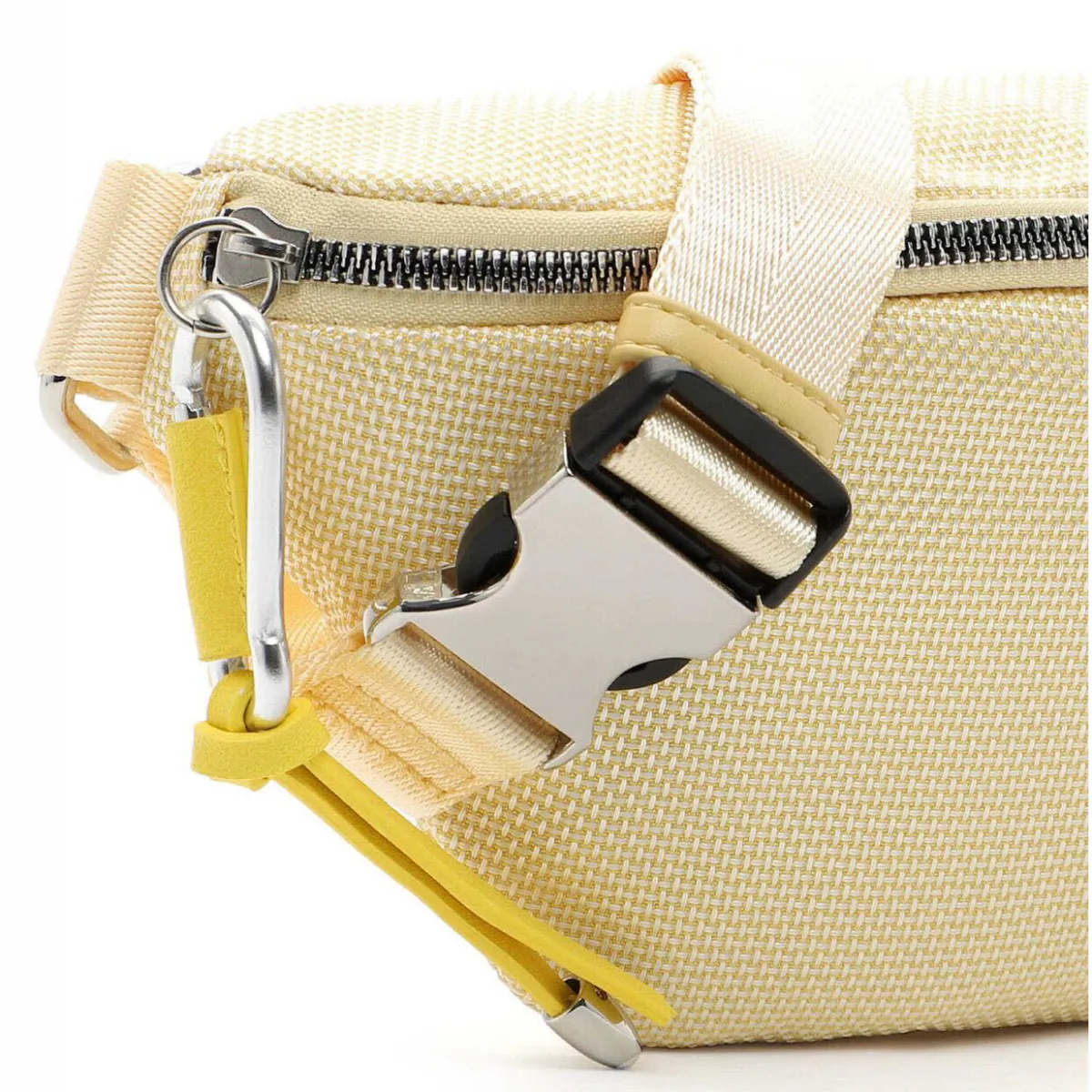 Edel verarbeitetes Nylon in Gelb wurde mit einer zweifarbigen Web-Optik versehen, das der Tasche das gewisse Etwas verleiht. Der Anhänger mit Karabiner Haken und der Logo Print in Gelb runden das Design gekonnt ab.