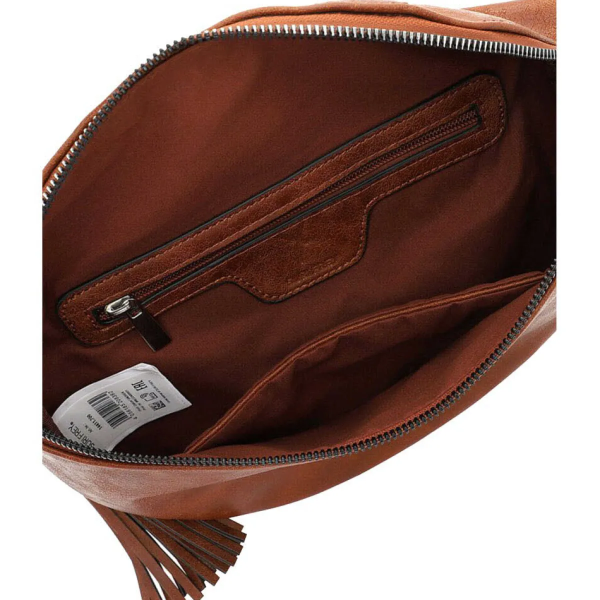 Edel verarbeitetes Kunstleder in Cognac wurde mit einer angenehmen Haptik versehen, die der Umhängetasche das gewisse Etwas verleiht. Durch den verstellbaren und abnehmbaren Umhängegurt kannst du die Tasche auch crossover tragen.
