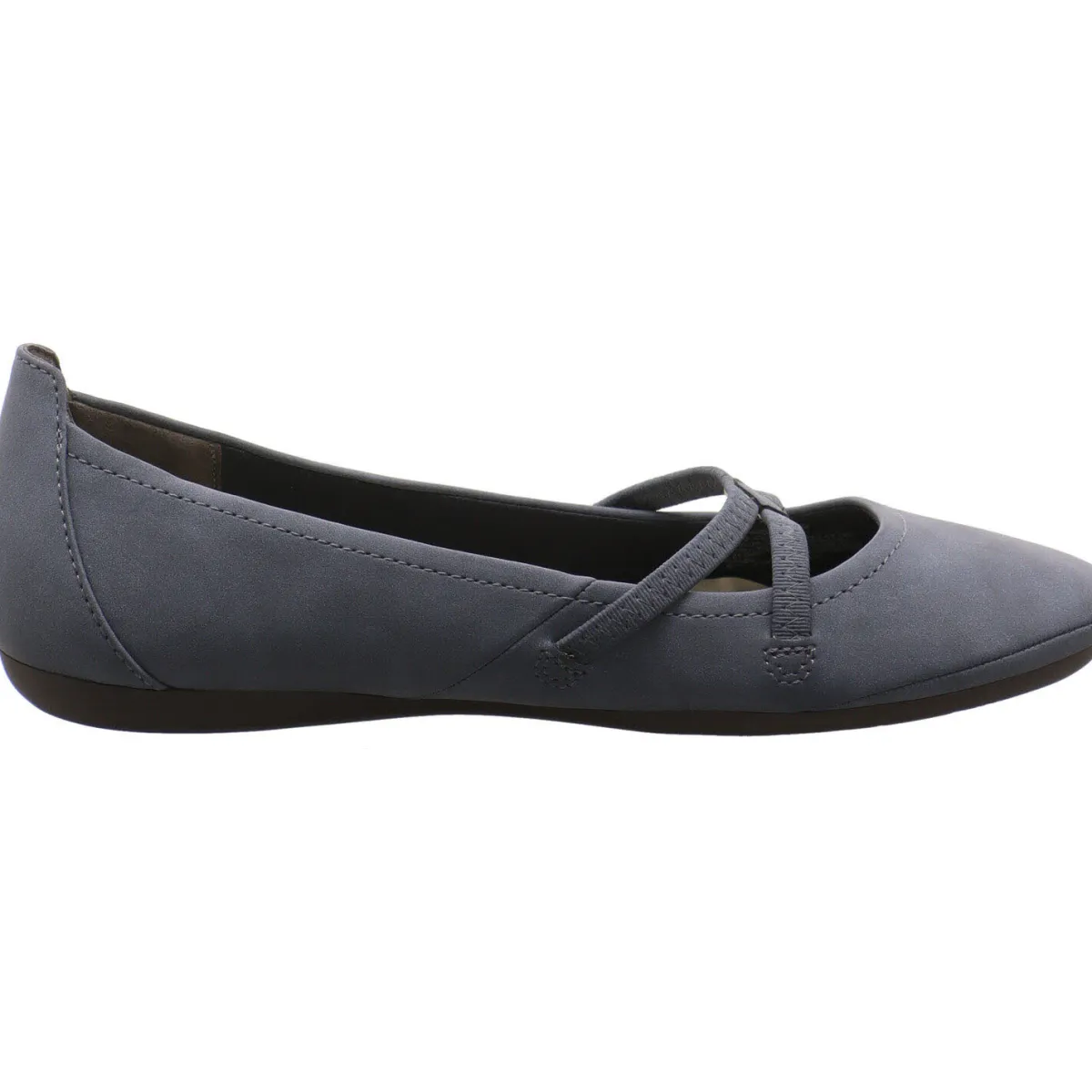 Aus Kunstleder in Blau gefertigt ist er auf dem Rist mit zwei Gummibändern verziert. Diese geben zusätzlich Halt und geben dem Schuh seinen besonderen Look. Die Inensohle ist angenehm weich und die Fersenkappe etwas höher gearbeitet. Sie bietet dir zusätzlich einen guten Halt.