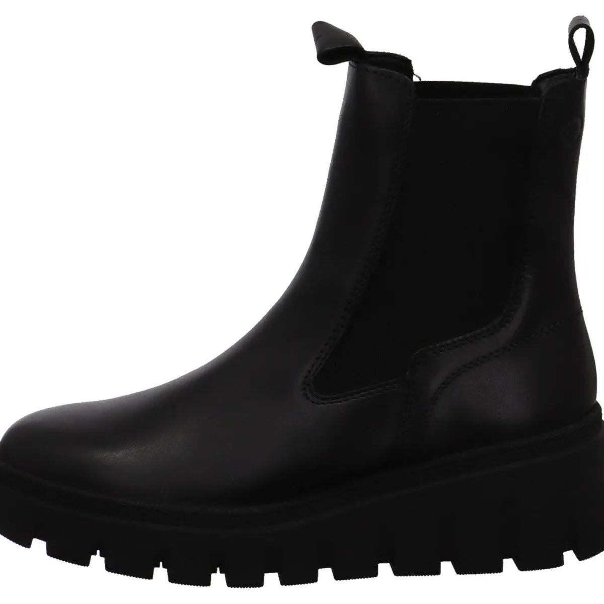 Er wurde aus hochwertigem Echleder in Schwarz gefertigt. Die Laschen am Schaft und gegenüberliegenden Gummipanels, helfen bei einem leichten Einstieg und geben ihm seinen modernen Look.