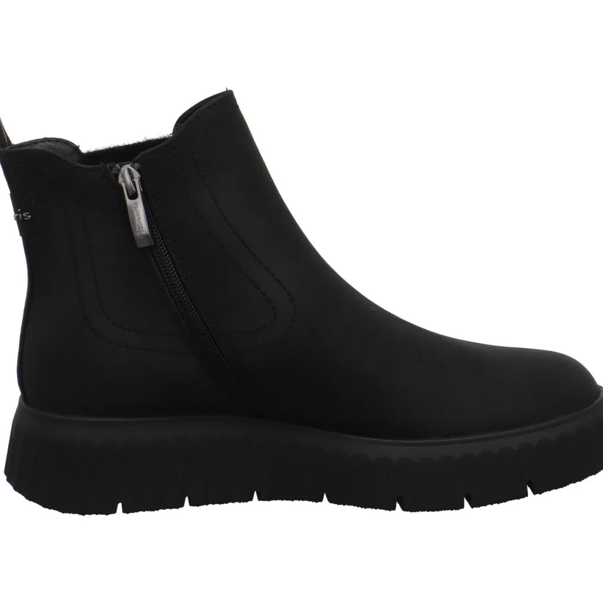 Er wurde aus einem Mix aus Kunstleder und Textil in Schwarz gefertigt. Mit dem seitlichen Reißverschluss und der Lasche am Schaft ist der Einstieg ganz leicht.