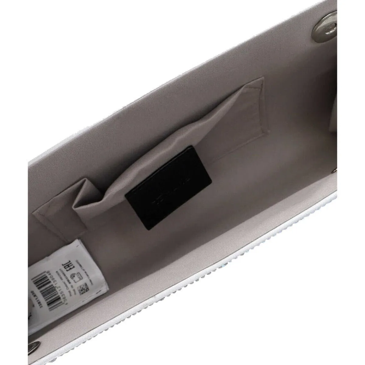 Das hochwertige und anschmiegsame Obermaterial aus Polyester ist mit großen und kleinen Stasssteinen besetzt die dezent farbig schillern. Durch die stilvolle und abnehmbare Kette kann die Damen Handtasche auch über der Schulter getragen werden. In dem kleinen Hauptfach findet das Notwendigste für den Abend Platz.