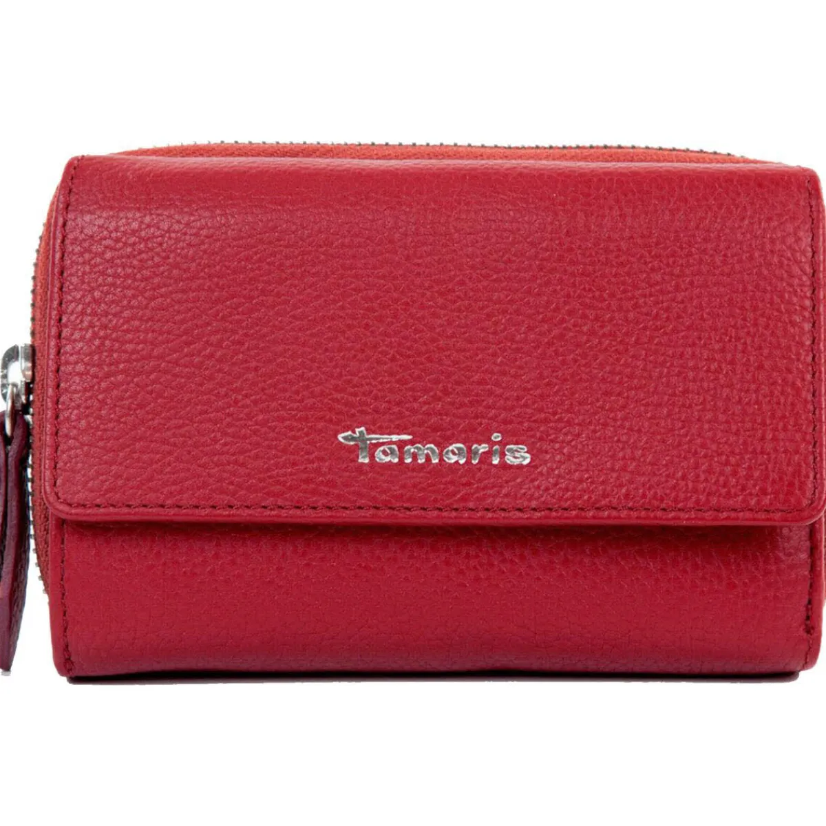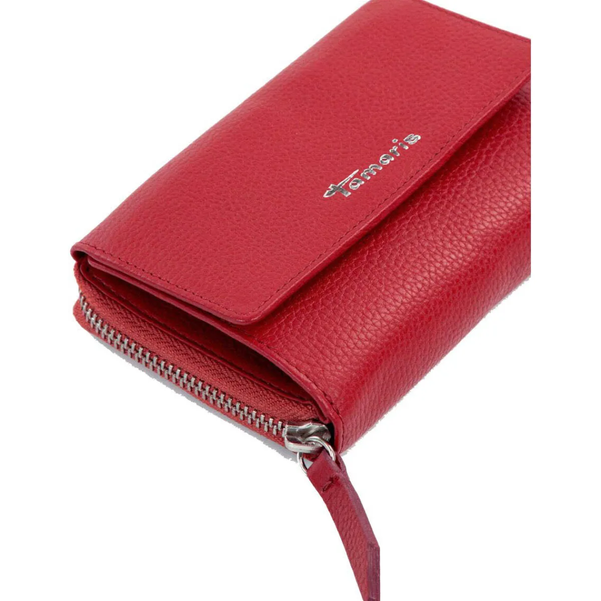 Gefertigt aus authentisch genarbten Echtleder in Rot ist sie mit dem Tamaris Logo versehen.
