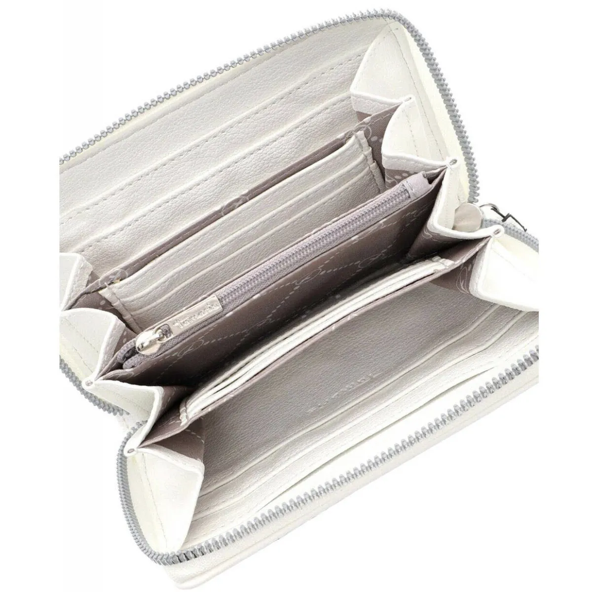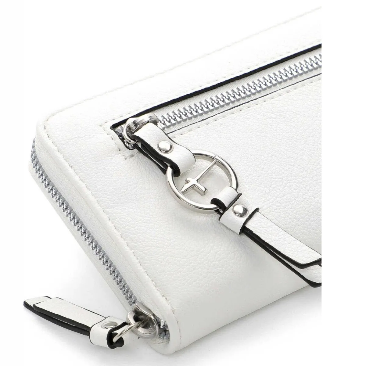 Das Portemonnaie lässt sich durch einen umlaufenden Reißverschluss öffnen und schließen. Das Innenleben besteht aus großen Fächern für Geldscheine und zahlreichen kleinen Fächern für Karten und Ähnliches. Für Kleingeld verfügt die Geldbörse über ein separates Innenfach mit Reißverschluss. An der Vorderseite befindet sich ein weiteres kleines Fach, was ebenfalls mit einem Reißverschluss geschlossen werden kann. Daran befindet sich ein toller Tamaris Anhänger.