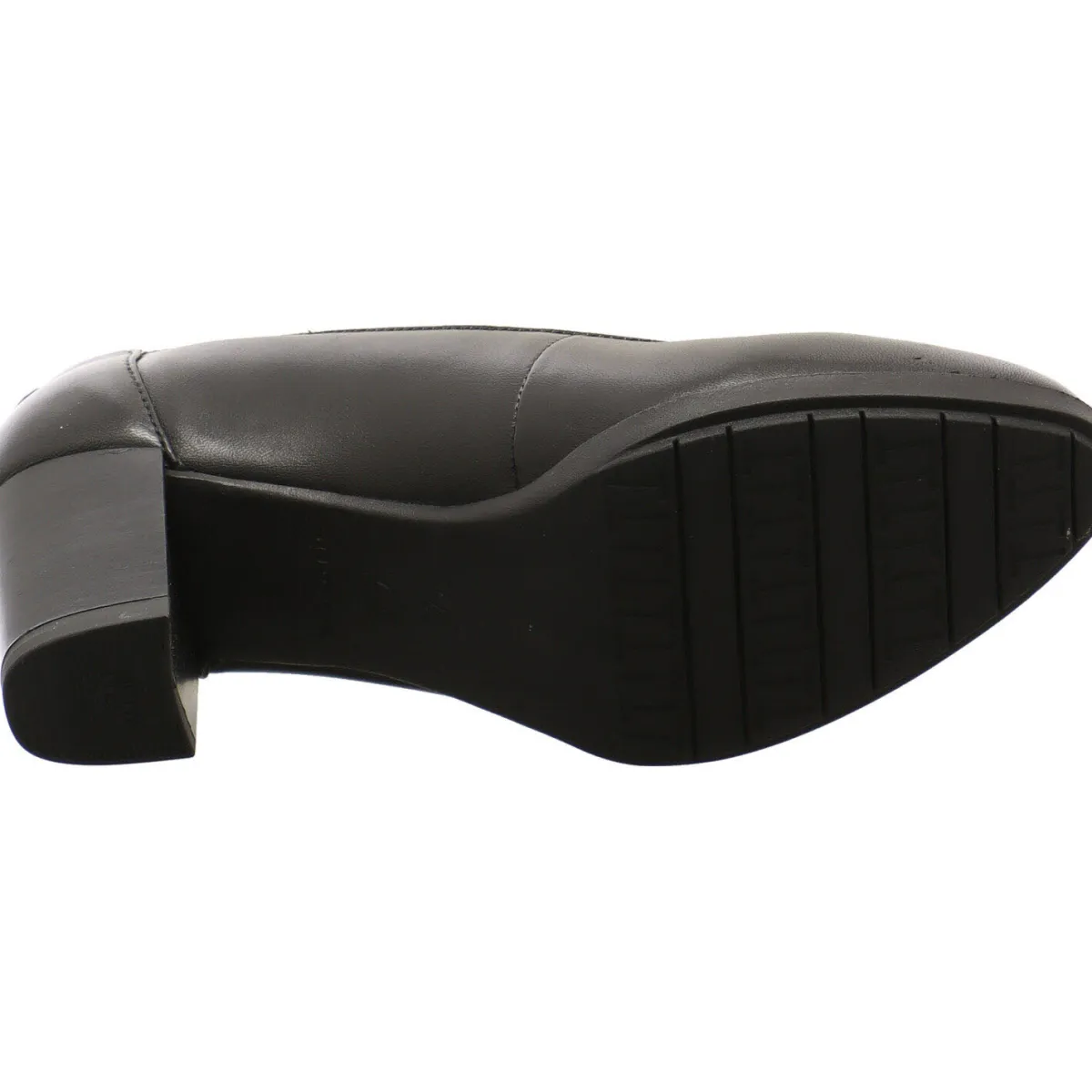 Das Obermaterial wurde aus Echtleder in Schwarz gearbeitet. Das Touch it Echtleder Fußbett ist angenehm weich und zusätzlich perforiert, es sorgt für ein tolles Tragegefühl. Der bequeme Trichterabsatz in Holzschicht Optik hat eine angenehme Höhe und ist mit der Anti Slide Funktion ausgestattet. So hast du einen sicheren Halt.
