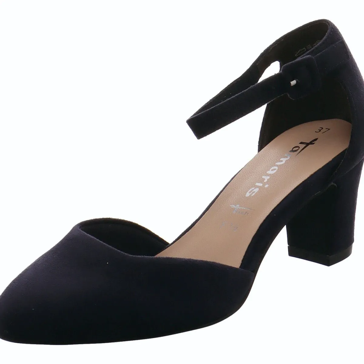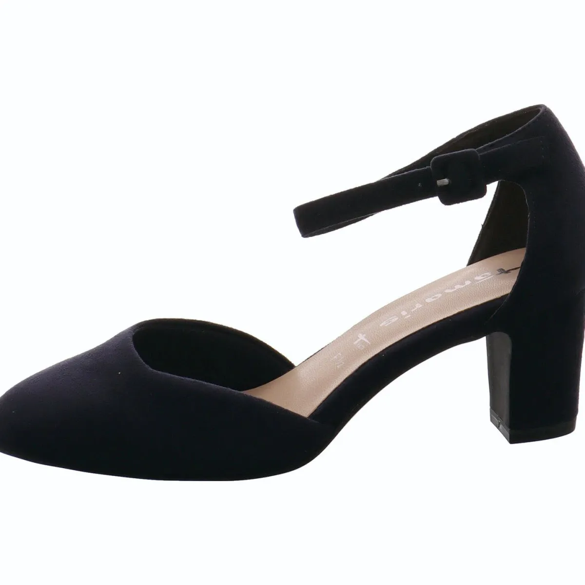 Durch den Riemen am Knöchel hast du einen guten Halt und kannst den Pumps mit der kleinen Schnalle am Knöchel perfekt an deinen Fuß anpassen.