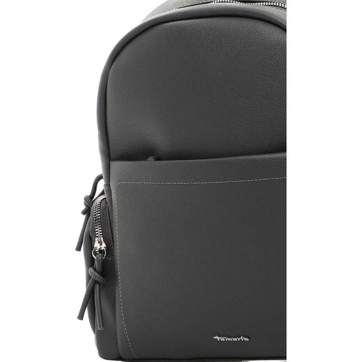 Das grob genarbte Obermaterial in Grau verleiht dem Rucksack einen klassischen und zeitlosen Look.