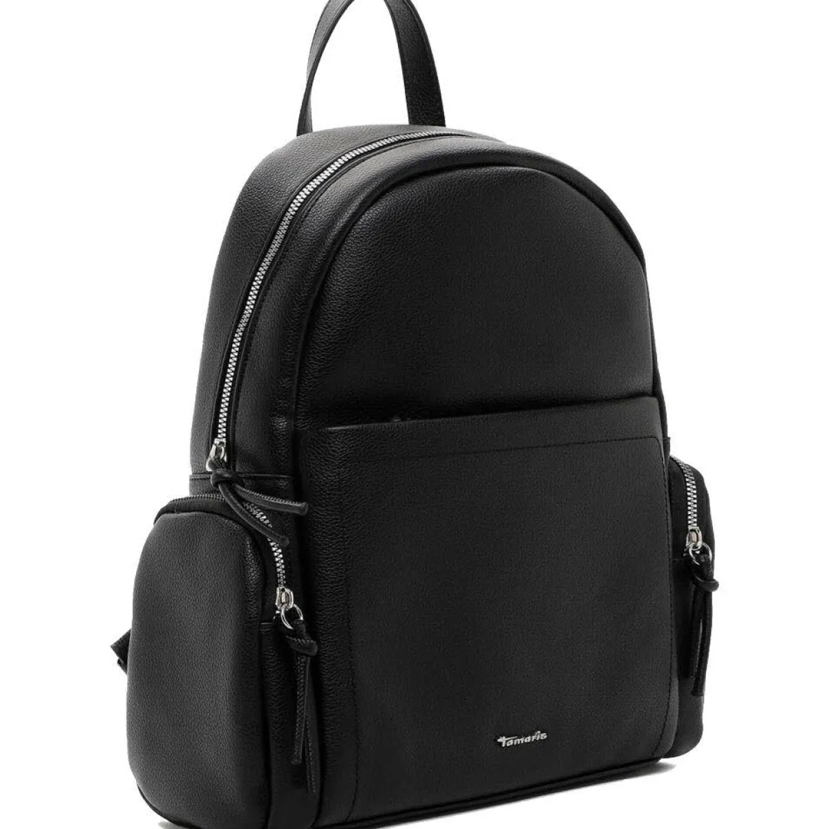 Das grob genarbte Obermaterial in Schwarz verleiht dem Rucksack einen klassischen und zeitlosen Look.