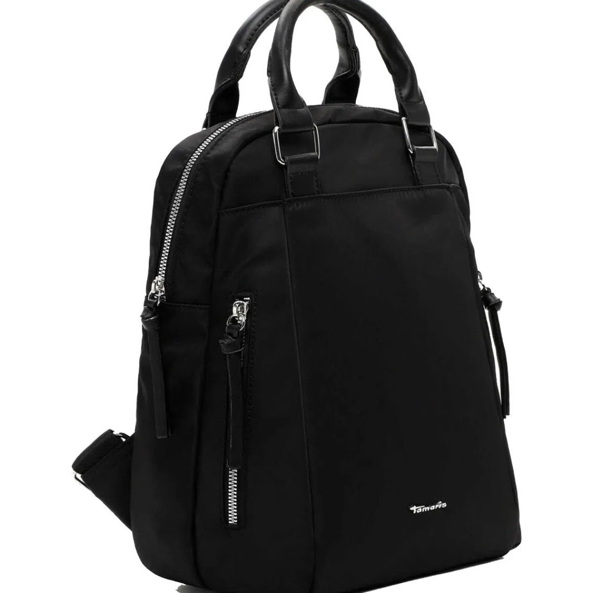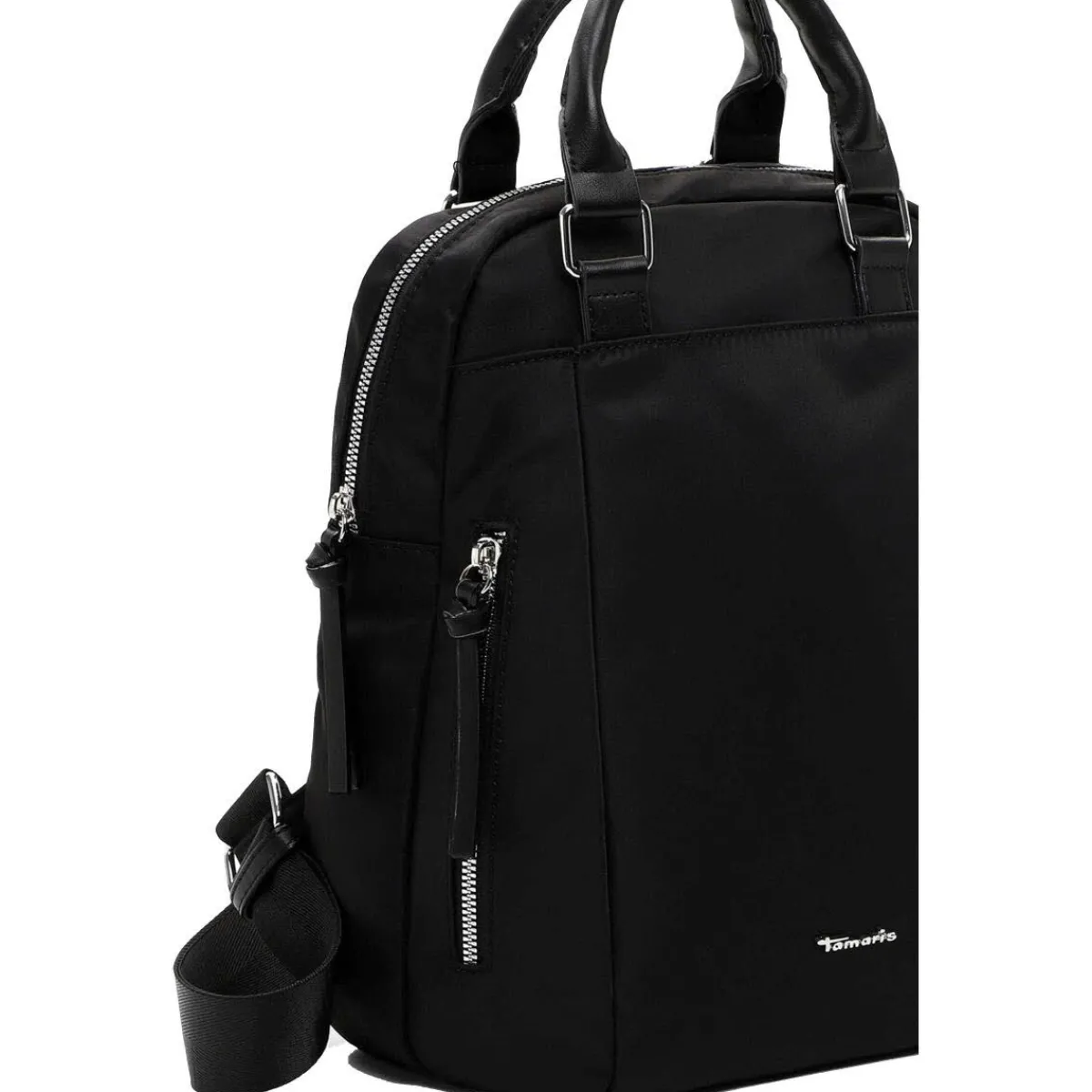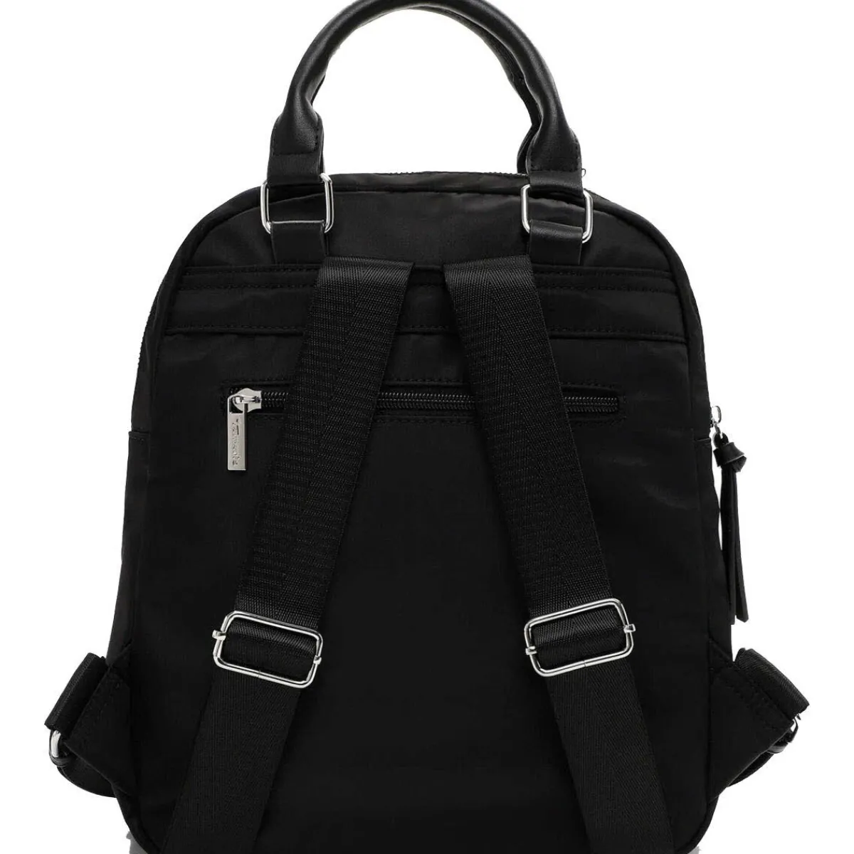Das Obermaterial aus Polyester in Schwarz ist pflegeleicht und robust und macht den Rucksack zum idealen Begleiter für den Alltag.