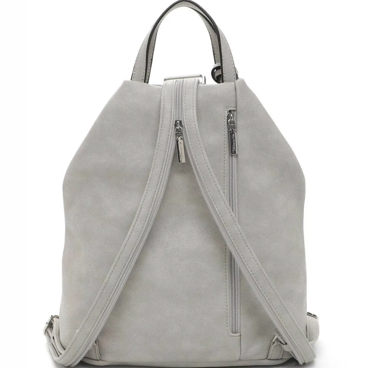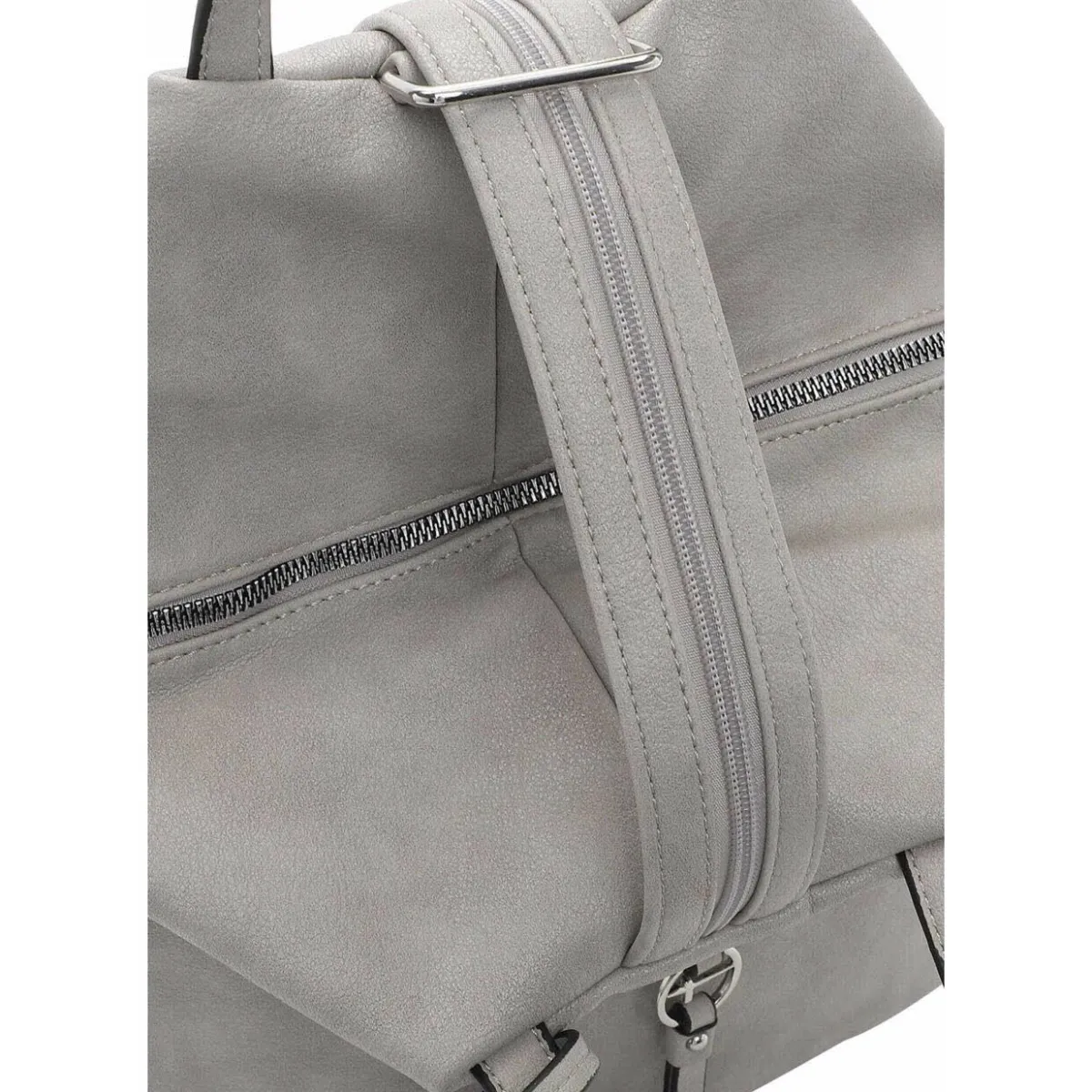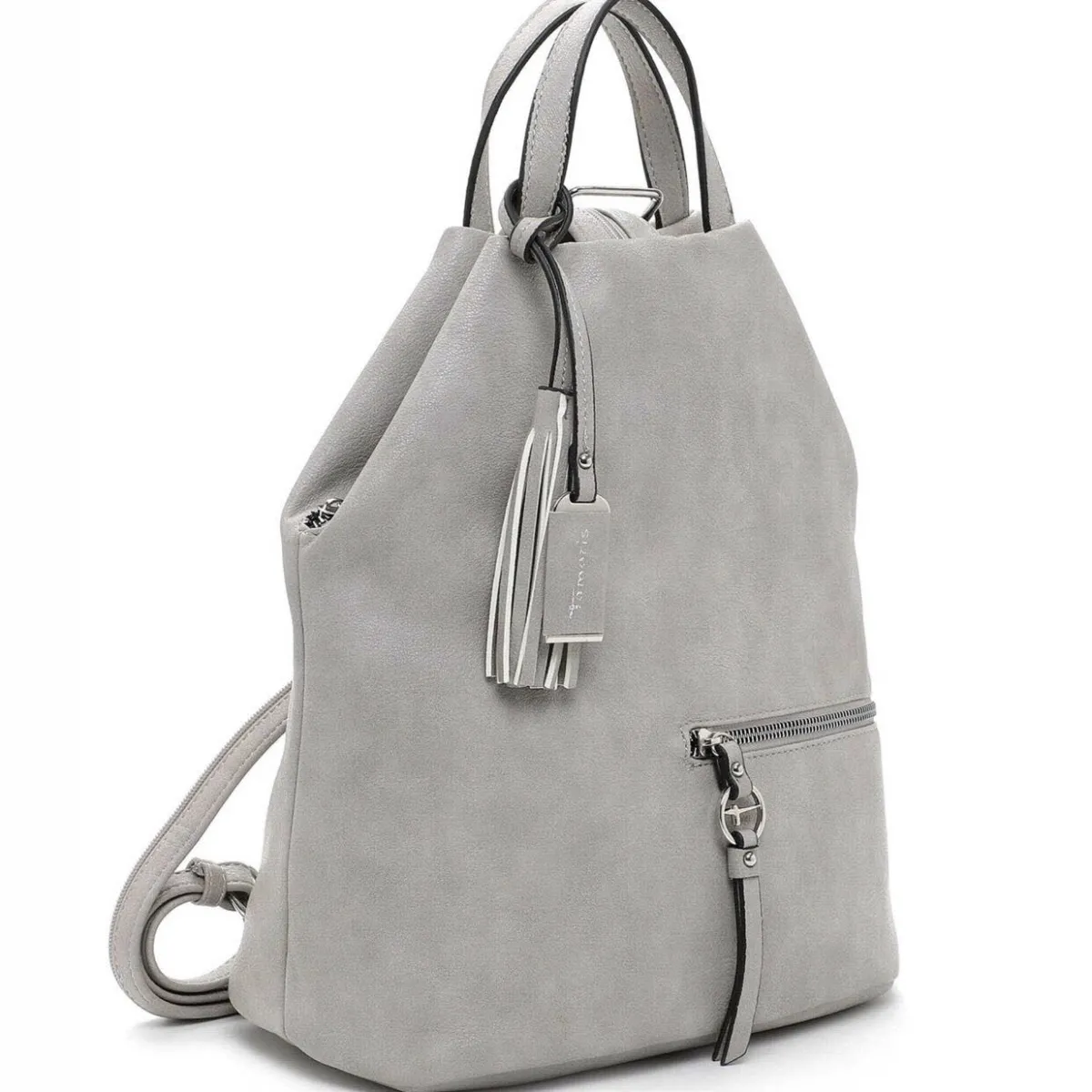 Das geschickt gestaltete Obermaterial in Grau zieht garantiert die Blicke auf sich und der abnehmbare Anhänger macht den Rucksack zu etwas ganz Besonderem. Highlight sind die durch einen Reißverschluss verbundenen Schultergurte, die ebenfalls als Tragehenkel benutzt werden können.