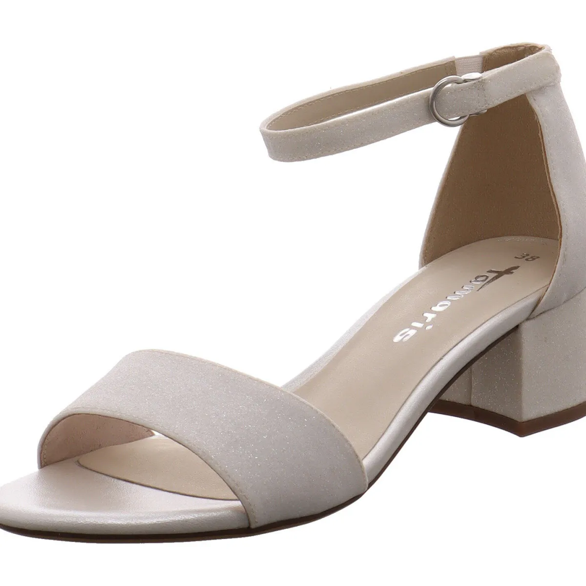 Das Synthetik Obermaterial in Weiß, ist mit einem tollen Glitzer Effekt versehen und verschafft dir einen glänzenden Auftritt. Der angesagte Blockabsatz bietet durch die patentierte Anti-Slide Technologie sicheren Halt, dank eines rutschfesten Absatzflecks.